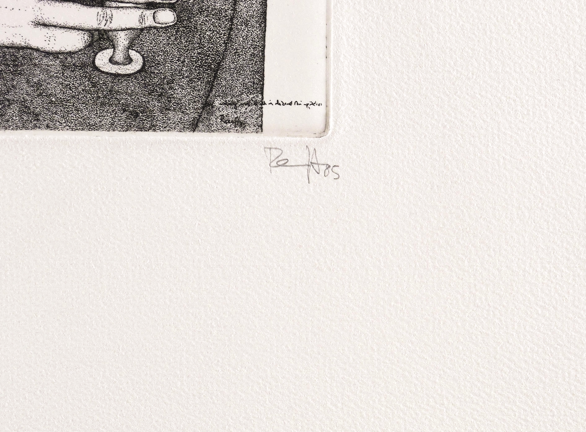 Rechts unten in Bleistift signiert und datiert. Links Titel. In der Blattecke rechts unten Trockenstempel und Auflagenbezeichnung. In der Platte aufwändige spiegelschriftliche Inschriften. – Tadelloses Exemplar. Sehr guter Zustand.
