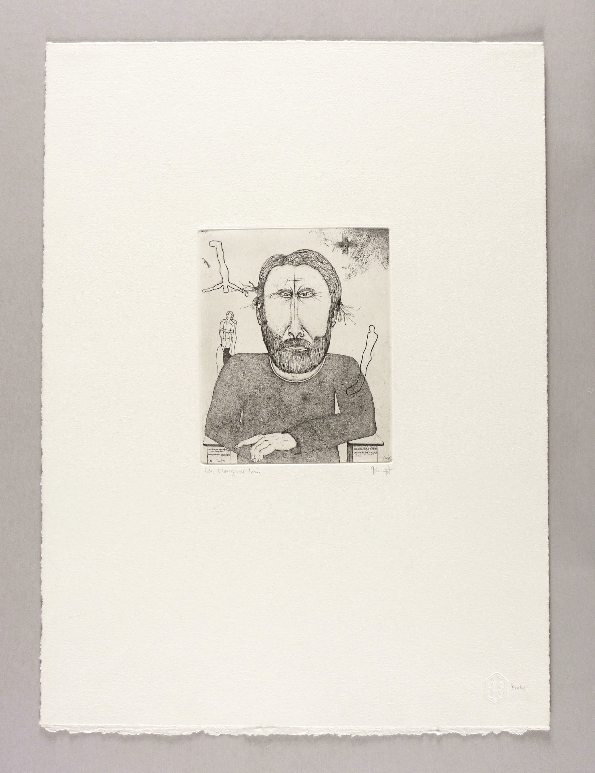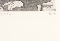 1983. Radierung / Strichätzung, in Schwarz, auf schwerem hellgelbem Hahnemühle. – Originale Künstlergrafik, von Thomas Ranft. – Probedruck. – 18,3 x 14,8 cm (Darstellung / Platte), 54 x 40 cm (Blatt).