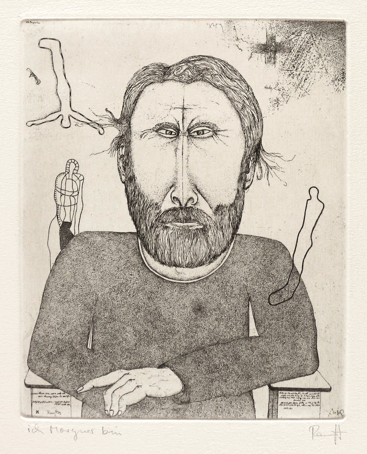 Thomas Ranft (*1945 Königsee/Thüringen, lebt und arbeitet in Chemnitz). Deutscher Grafiker. Nach einer Tätigkeit als Baumschulgärtner in Weimar und Markkleeberg studierte er von 1967 bis 1972 an der Hochschule für Grafik und Buchkunst Leipzig. 1972 zog er nach Karl-Marx-Stadt (heute Chemnitz). Auf seine Initiative hin gründeten er, Carlfriedrich Claus, Michael Morgner und Dagmar Ranft-Schinke die Künstlergruppe Clara Mosch (1977-1982) in Adelsberg, einem Stadtteil von Chemnitz. 1985 begegnete er erstmals Ernst Jandl. Später illustrierte er Jandls Werk "der beschriftete sessel". Von 1986 bis 1989 lehrte er an der Fachschule für angewandte Kunst in Schneeberg. Seit 1993 ist er Mitglied der Freien Akademie der Künste zu Leipzig. 2003 erhielt er den Hans-Theo-Richter-Preis der Sächsischen Akademie der Künste.