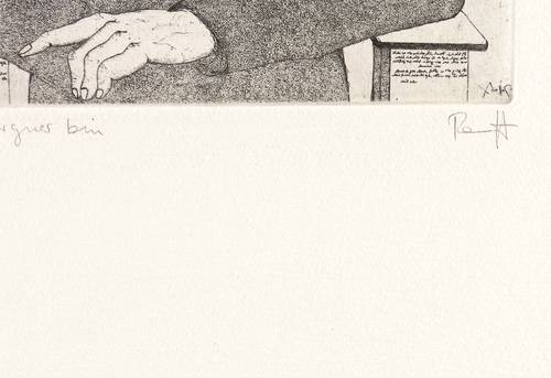 Rechts unten in Bleistift signiert: ″Ranft″. Links Titel. In der Ecke rechts unten Trockenstempel und Auflagenbezeichnung. In der Platte links unten signiert und datiert: ″Ranft 83″. Weiter spiegelverkehrte Inschriften. – Sehr guter Zustand.