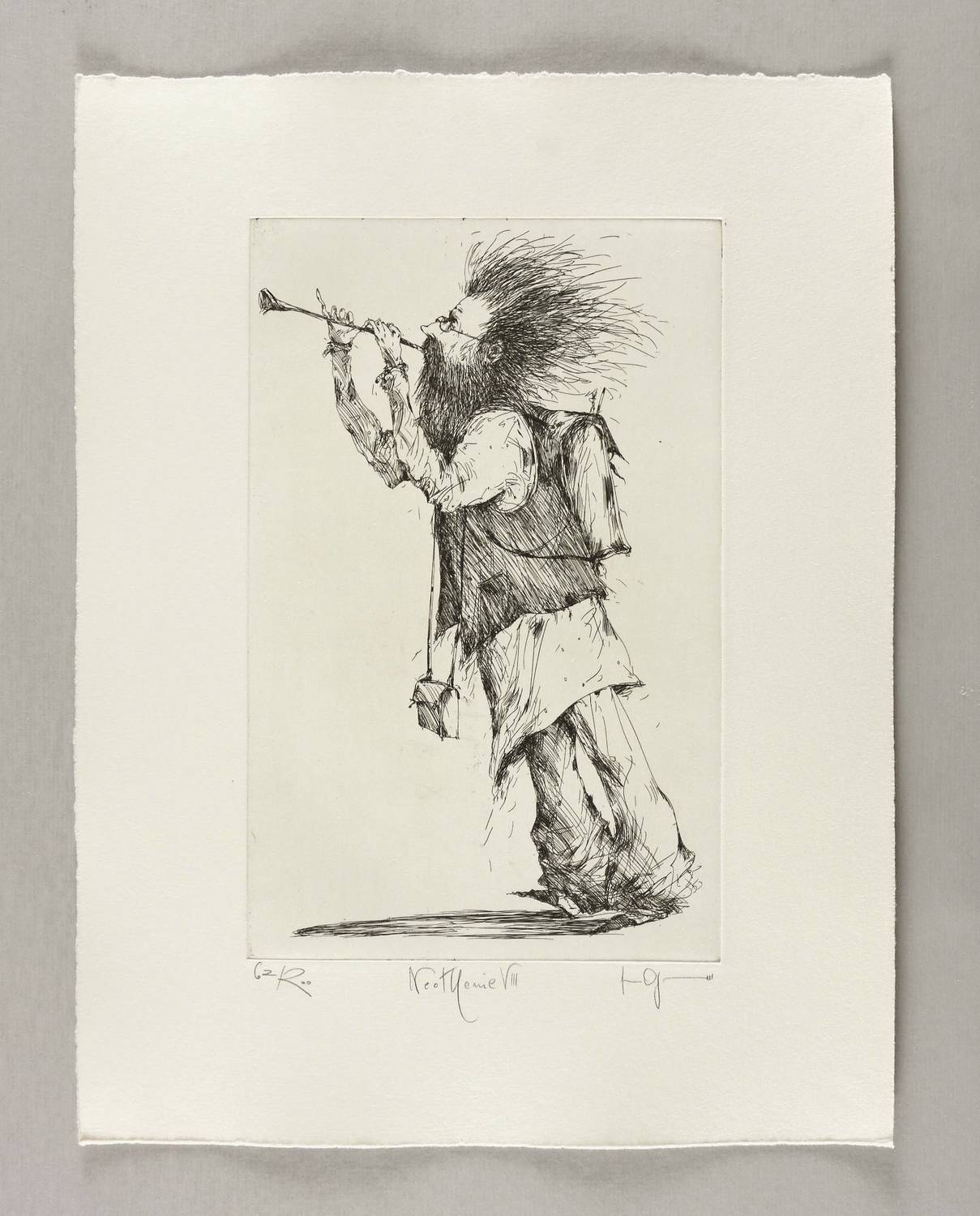 1986. Radierung / Strichätzung, in Schwarz, auf kräftigem hellchamois Büttenpapier. – Originale Künstlergrafik, von Gertrude Degenhardt. – Auflage Exemplar Nr. 62/200. – 27,2 x 17,3 cm (Darstellung / Platte), 40 x 30 cm (Blatt).