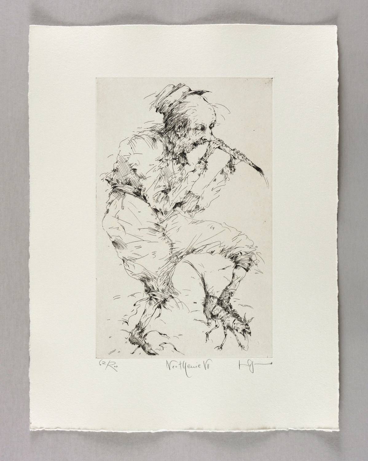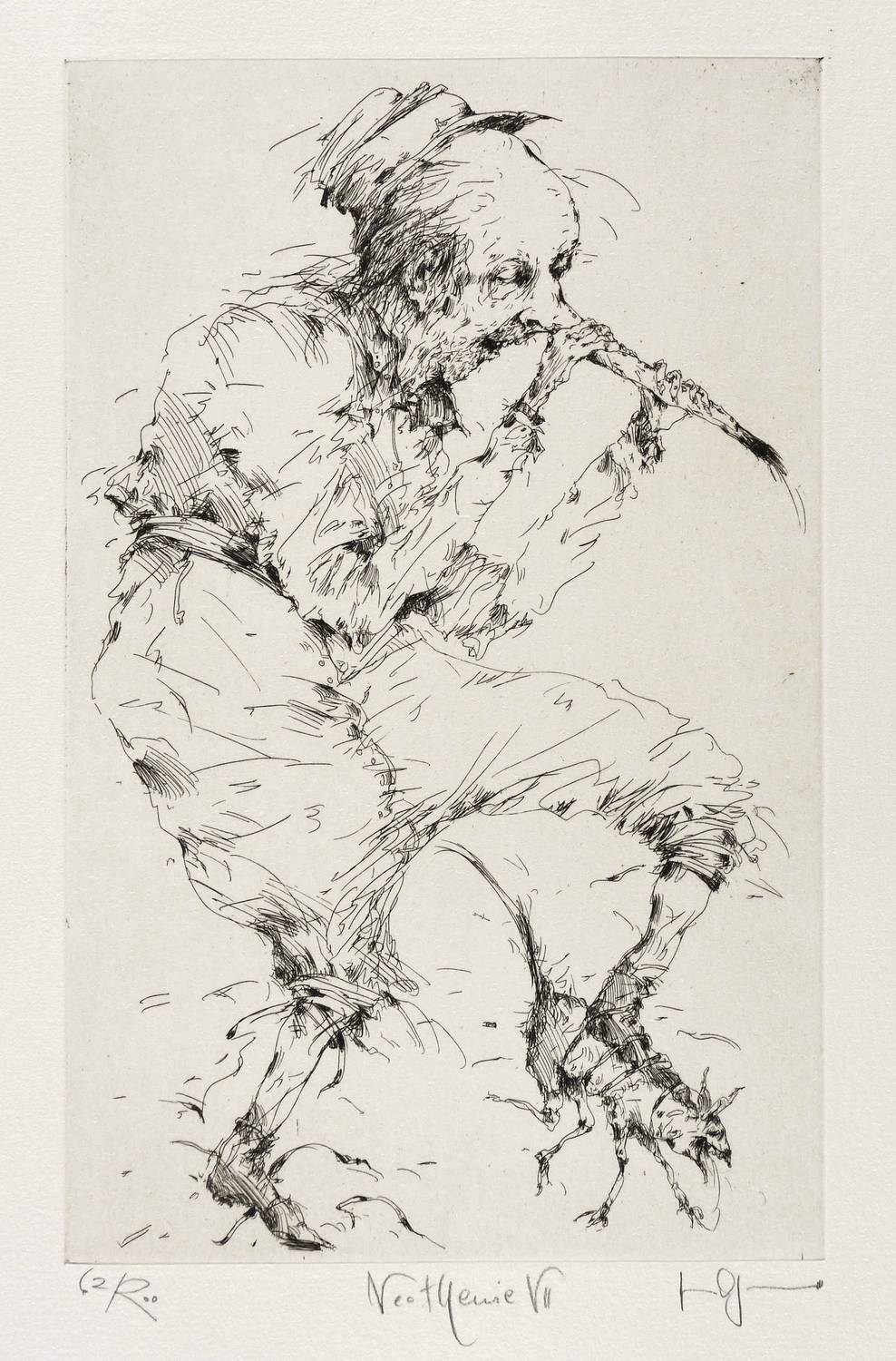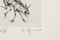 1986. Radierung / Strichätzung, in Schwarz, auf kräftigem hellchamois Hahnemühle. – Originale Künstlergrafik, von Gertrude Degenhardt. – Auflage Exemplar Nr. 62/200. – 27,3 x 17,2 cm (Darstellung / Platte), 40 x 30 cm (Blatt).