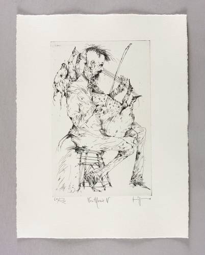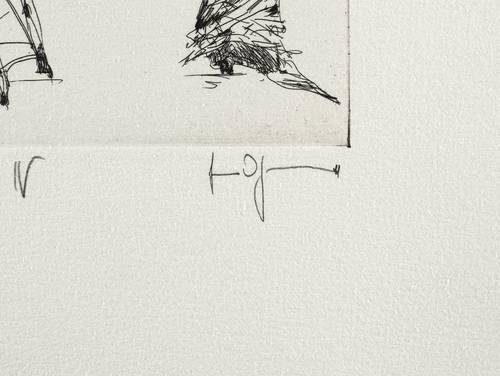 Aus: Gertrude Degenhardt, Neothenie - oder Das neue Genie. Grafik-Edition XXII (Leipzig: Reclam 1986). – In Bleistift rechts unten signiert. Links Auflagenbezeichnung und Titel. – Tadellos erhalten. Sehr guter Zustand.