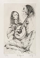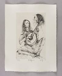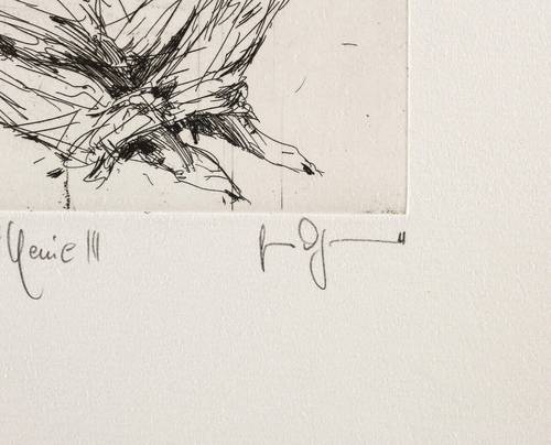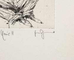 1986. Radierung / Strichätzung, in Schwarz, auf kräftigem hellchamois Hahnemühle. – Originale Künstlergrafik, von Gertrude Degenhardt. – Auflage Exemplar Nr. 62/200. – 27,2 x 17,3 cm (Darstellung / Platte), 40 x 30 cm (Blatt).