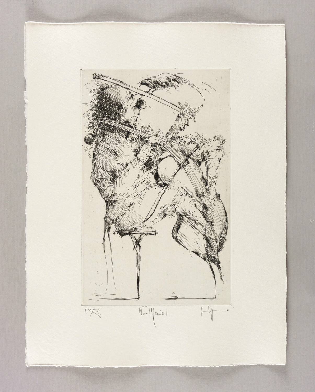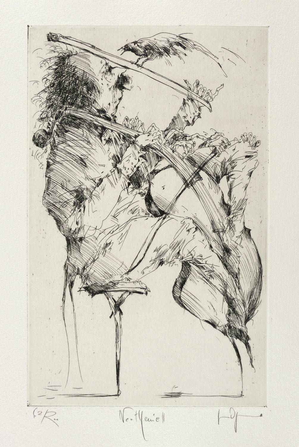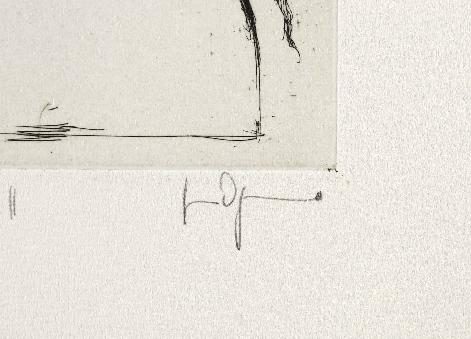 1986. Radierung / Strichätzung, in Schwarz, auf kräftigem hellchamois Hahnemühle. – Originale Künstlergrafik, von Gertrude Degenhardt. – Auflage Exemplar Nr. 62/200. – 27,3 x 17,2 cm (Darstellung / Platte), 40 x 30 cm (Blatt).