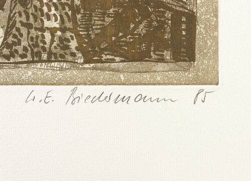 1985. Radierung / Strichätzung & Reservage, in Braun, auf hartem Maschinenbütten. – Originale Künstlergrafik, von Wolfgang E. Biedermann. – Auflage Exemplar Nr. 77/200. – 20,7 x 20,5 cm (Darstellung / Platte), 38 x 36 cm (Blatt).