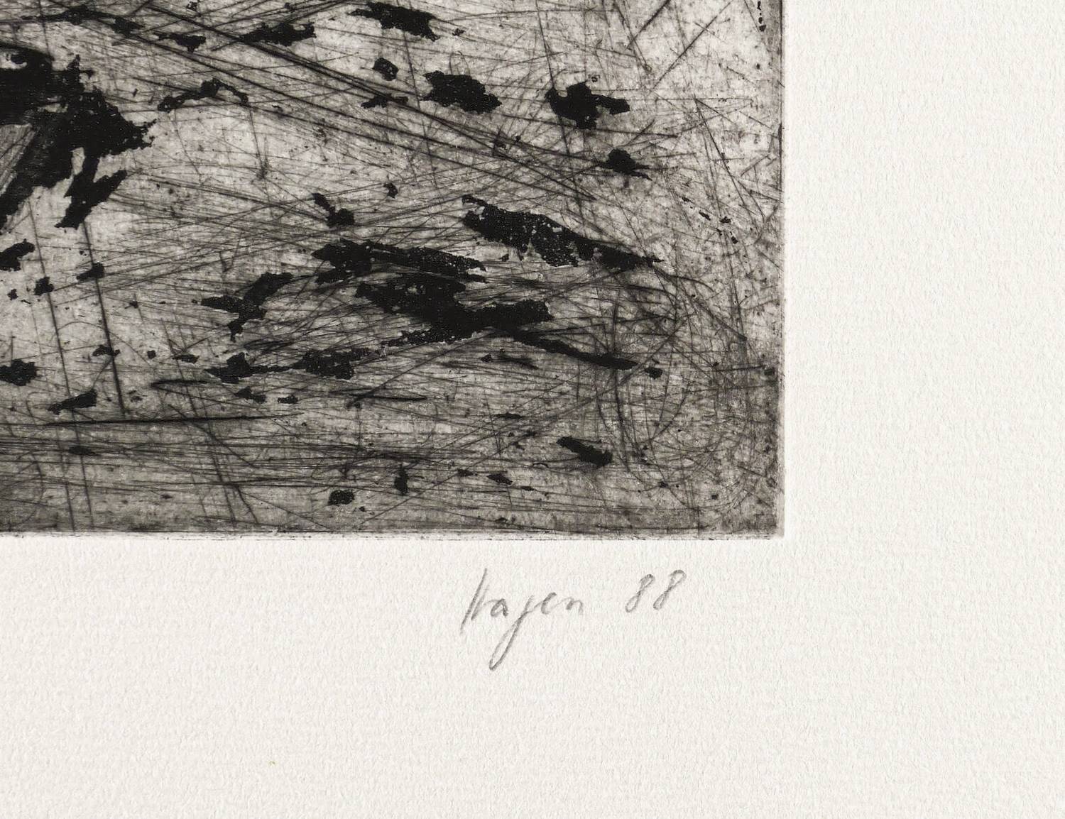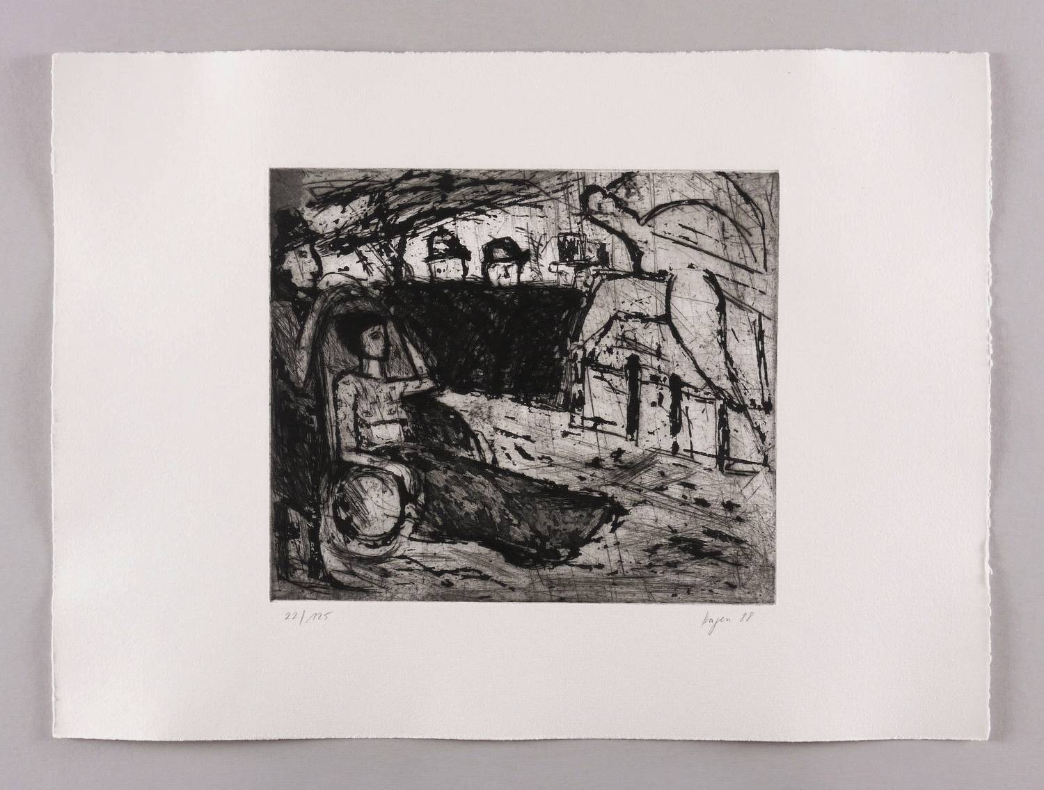 1988. Radierung / Reservage & Kaltnadel, mit Plattenton, in Schwarz, auf Hahnemühle-Bütten. – Originale Künstlergrafik, von Sylvia Hagen. – Auflage Exemplar Nr. 22/125. – 24,8 x 28,9 cm (Darstellung / Platte), 40 x 54 cm (Blatt).