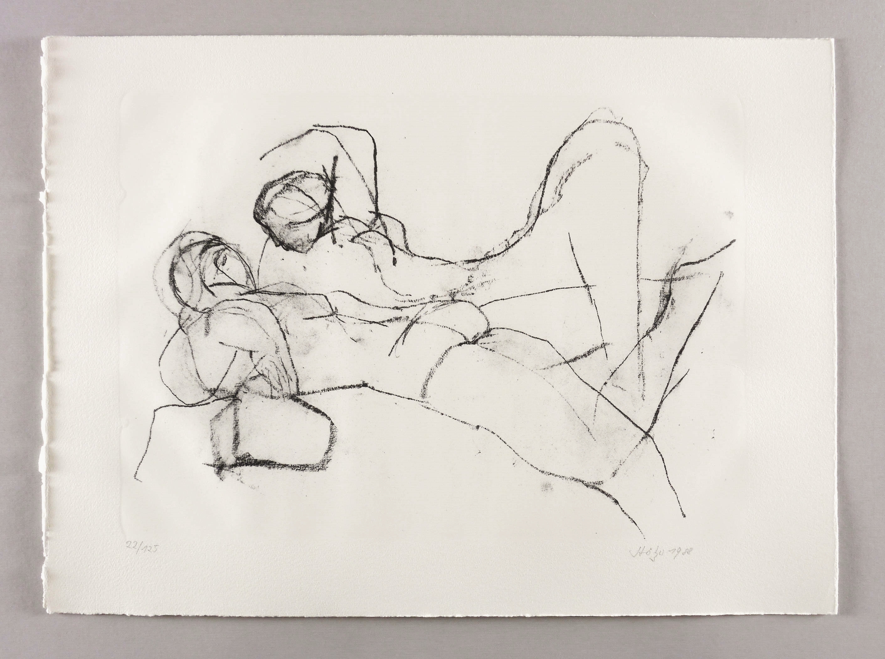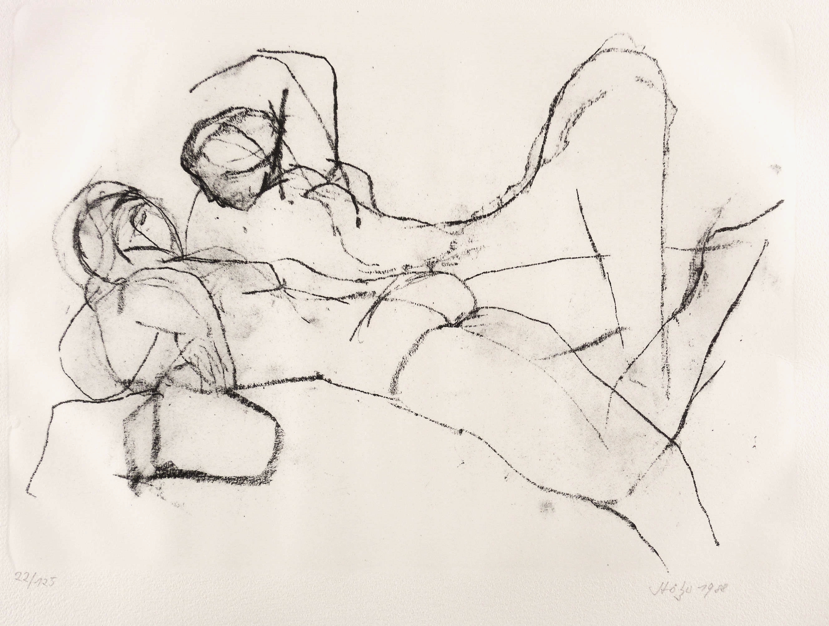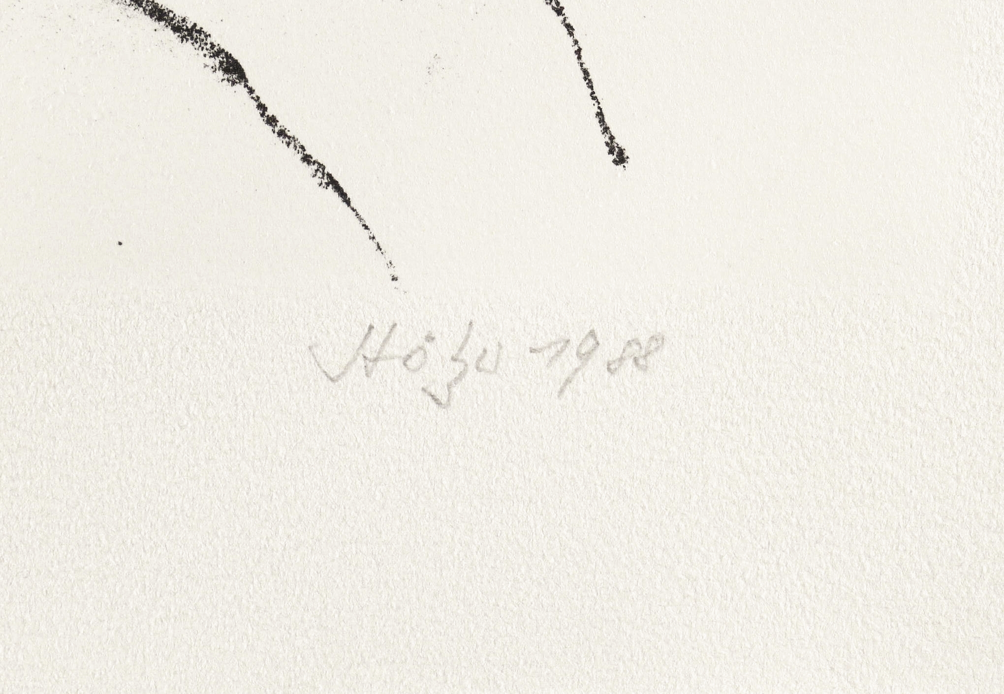1988. Lithografie / Kreidelithografie, in Schwarz, auf schwerem hellchamois Büttenpapier. – Originale Künstlergrafik, von Werner Stötzer. – Auflage Exemplar Nr. 22/125. – 29,7 x 41,2 cm (Darstellung / Druckbild), 40 x 54 cm (Blatt).