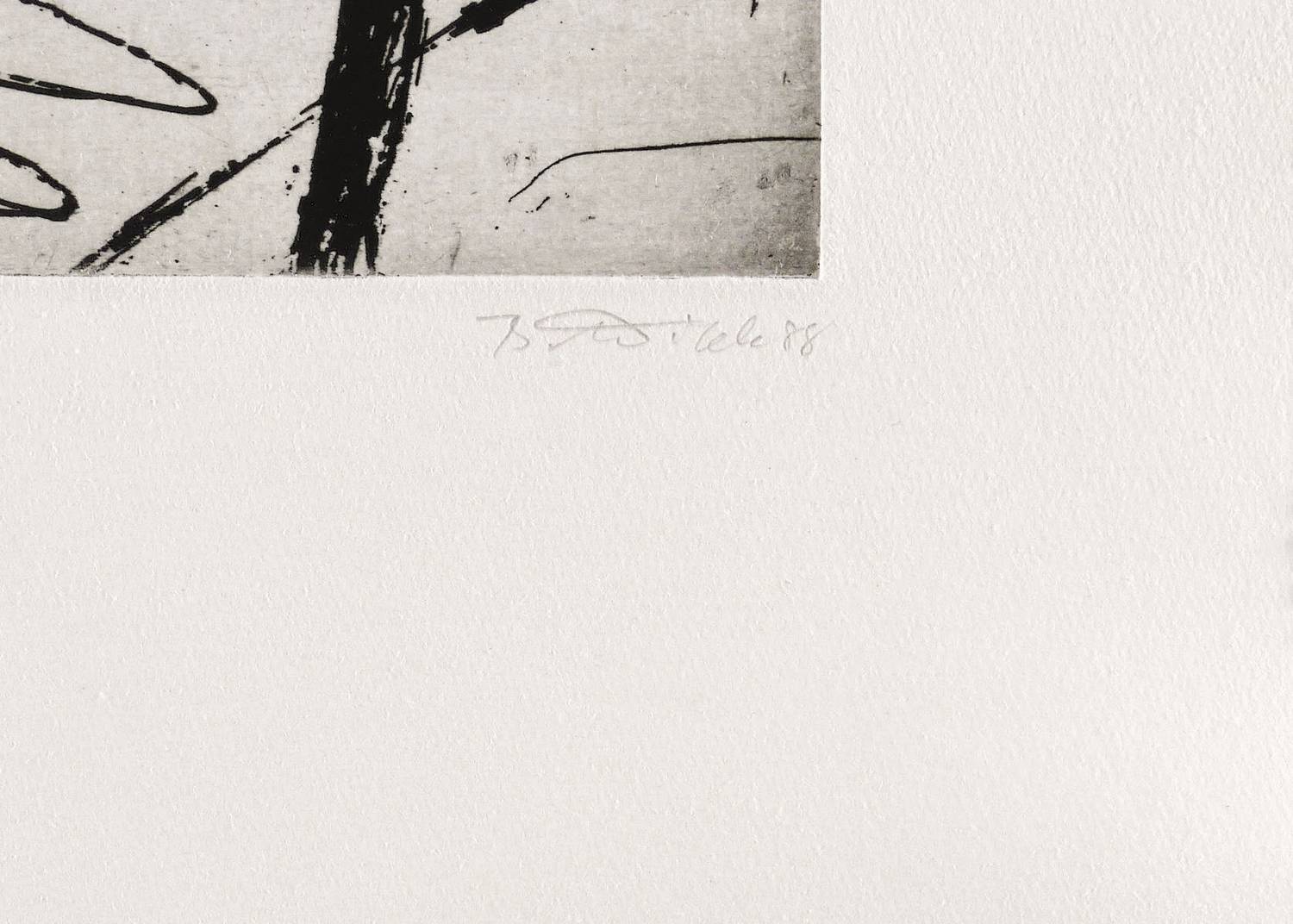 1988. Radierung / Reservage & Kaltnadel, mit Plattenton, in Schwarz, auf hellchamois Hahnemühle. – Originale Künstlergrafik, von Berndt Wilde. – Auflage Exemplar Nr. 22/125. – 18,8 x 27,8 cm (Darstellung / Platte), 54 x 39 cm (Blatt).