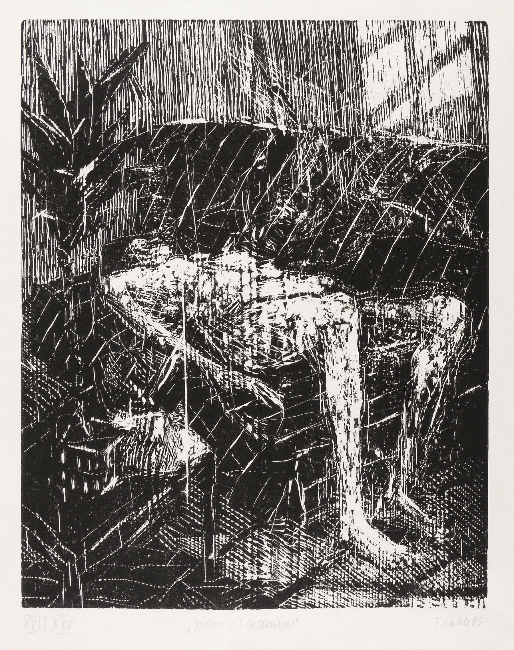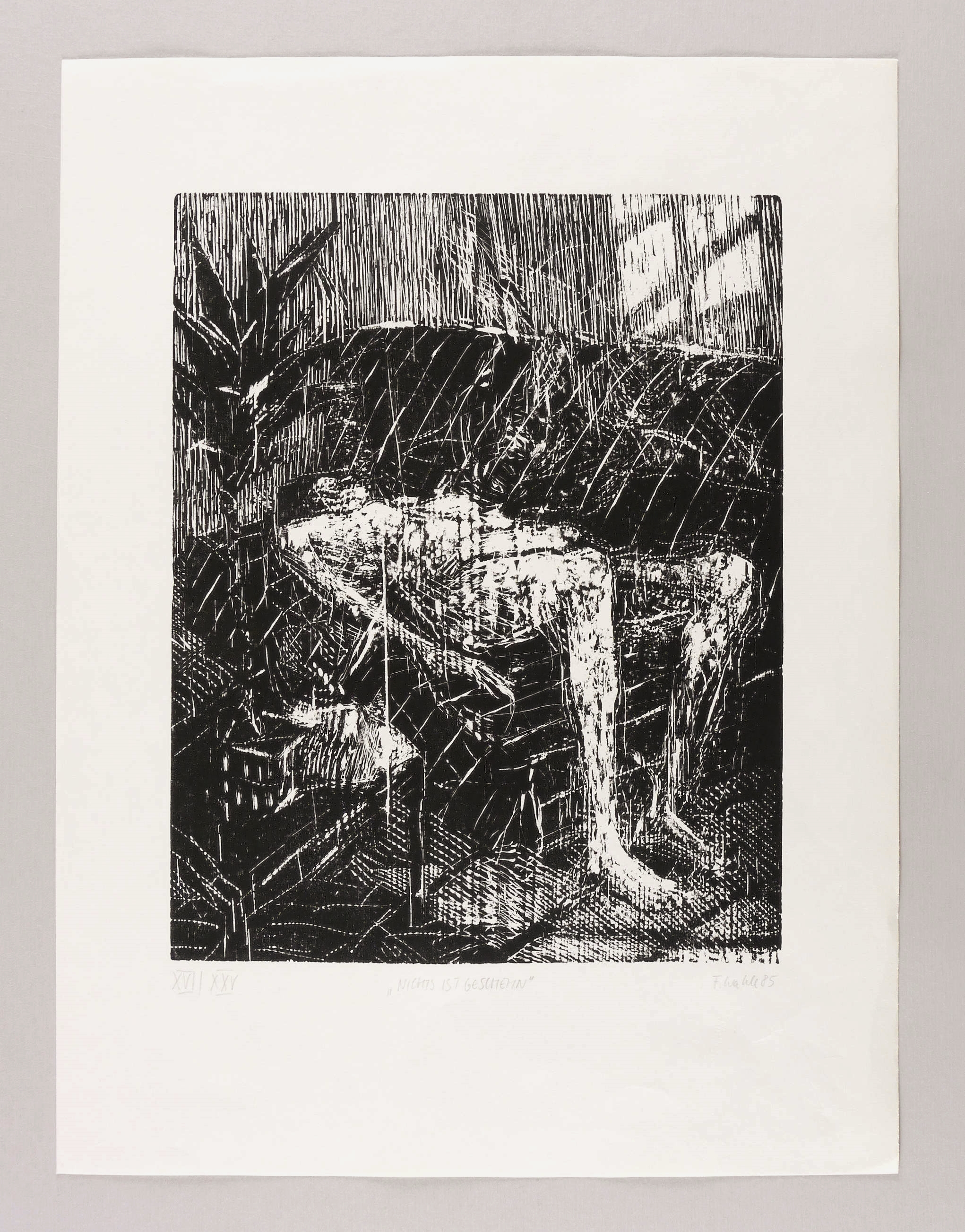Rechts unten in Bleistift signiert und datiert: ″F. wahle 85″. Links Auflagenbezeichnung: ″XVI/XXV″. Mittig Titel. – Aus der kleineren römisch nummerierten Auflage von 25 Exemplaren. – Sehr guter Zustand.