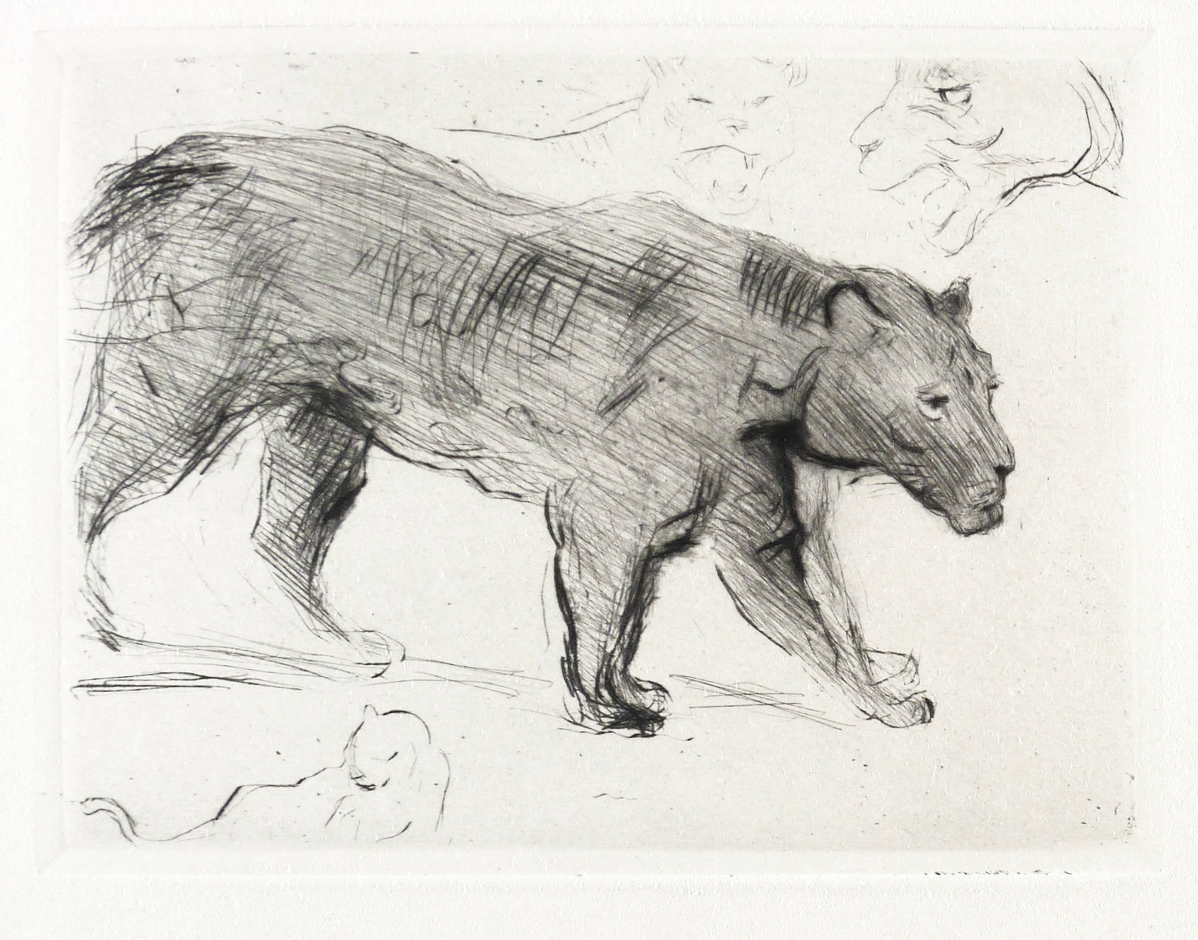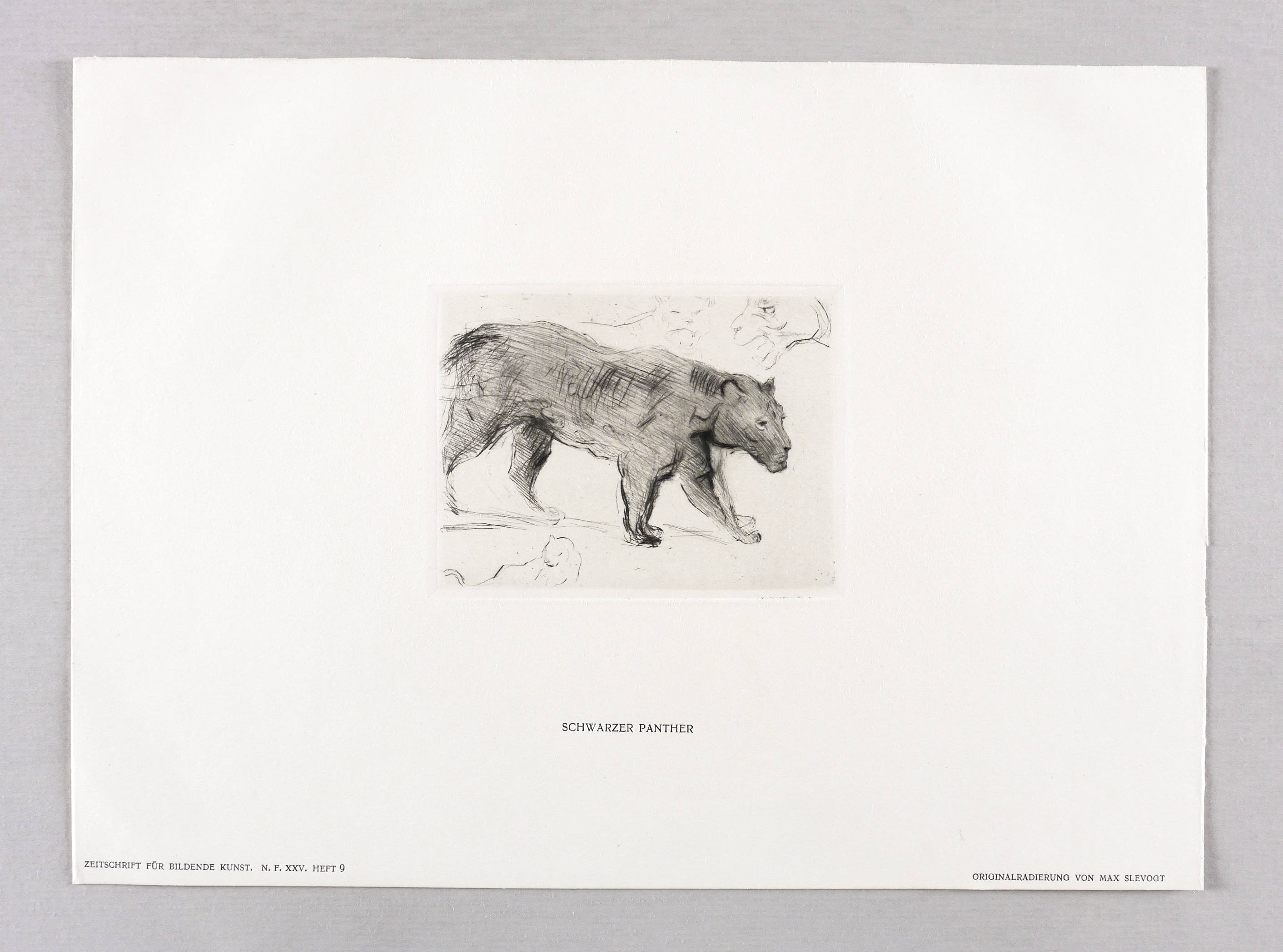 Sievers-Waldmann 495 2. – Nicht handsigniert. Unterhalb der Platte typografisch bezeichnet: ″SCHWARZER PANTHER″. Im unteren Blattrand rechts weiter: ″ORIGINALRADIERUNG VON MAX SLEVOGT″. Links Bandnummer. – Abzug von der originalen Platte. – Tadellos. Sehr guter Zustand.