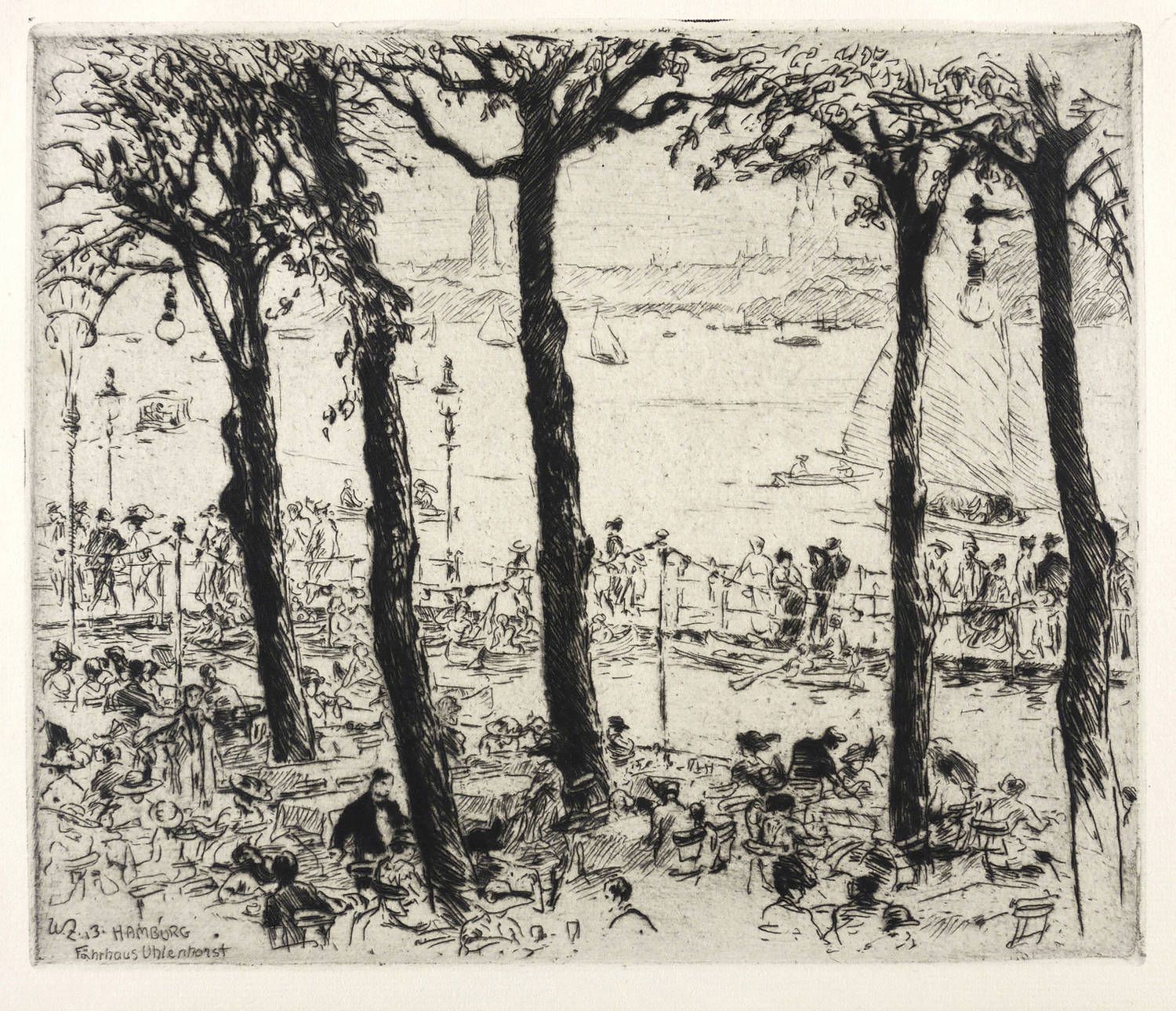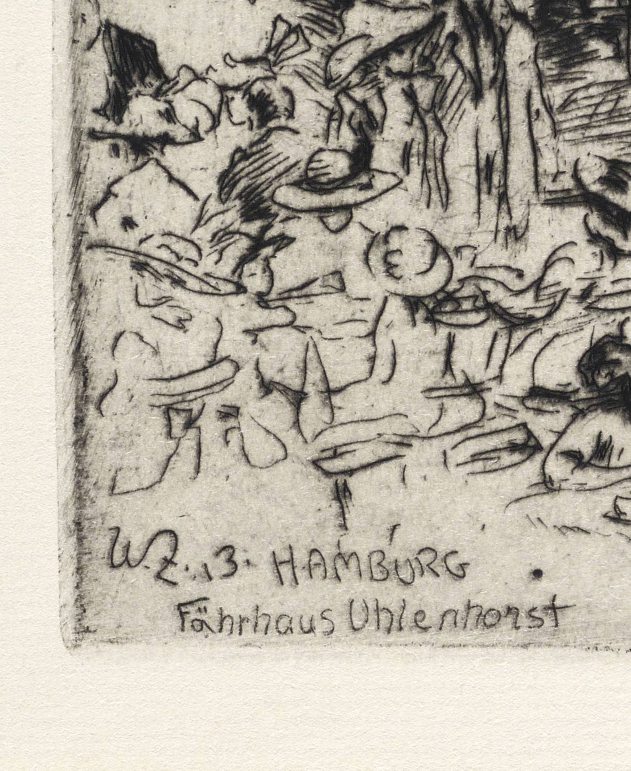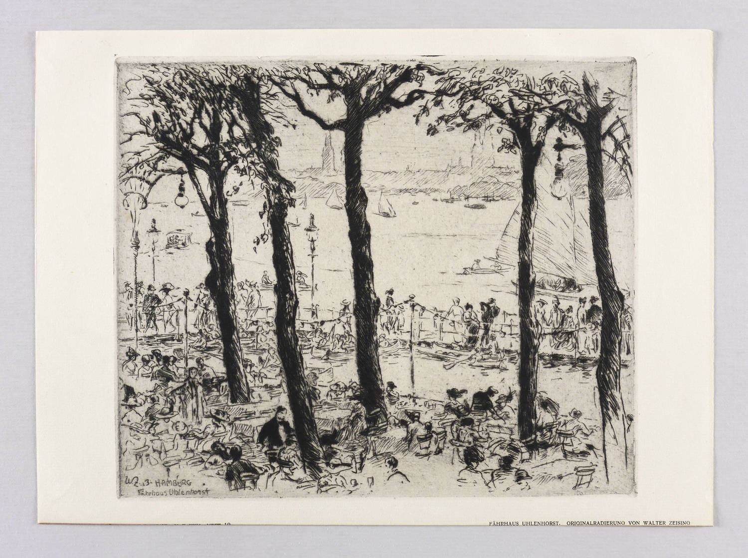 Richter 78. – Aus: Zeitschrift für bildende Kunst (Leipzig: E.A. Seemann 1914), Bd. 25. – In der Platte links unten monogrammiert, datiert und betitelt: ″WZ. 13. HAMBURG / Fährhaus Uhlenhorst″. Außerhalb der Platte rechts unten in Bleistift signiert. Am Blattrand rechts unten typografisch bezeichnet. – Tadellos. Sehr guter Zustand.