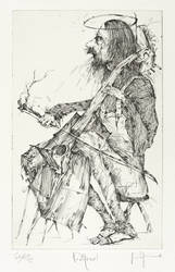 Aus: Gertrude Degenhardt, Neothenie - oder Das neue Genie. Grafik-Edition XXII (Leipzig: Reclam 1986). – In Bleistift rechts unten signiert: ″Gertrude Degenhardt″. Links Auflagenbezeichnung und Titel: ″62/200 // Neothenie″. – Tadellos erhalten. Sehr guter Zustand.