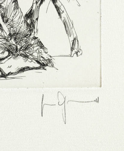 1986. Radierung / Strichätzung, in Schwarz, auf kräftigem hellchamois Hahnemühle. – Originale Künstlergrafik, von Gertrude Degenhardt. – Auflage Exemplar Nr. 62/200. – 27,3 x 17,1 cm (Darstellung / Platte), 40 x 30 cm (Blatt).