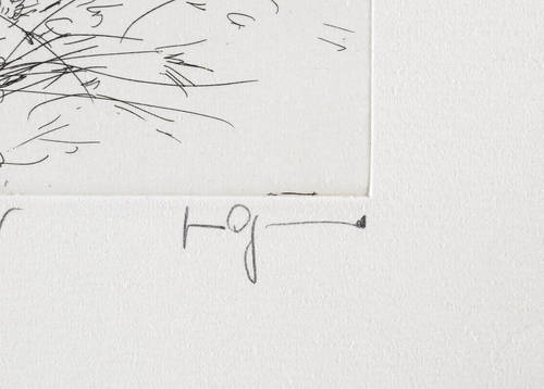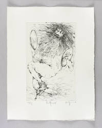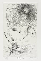 Aus: Gertrude Degenhardt, Neothenie - oder Das neue Genie. Grafik-Edition XXII (Leipzig: Reclam 1986). – In Bleistift rechts unten signiert: ″Gertrude Degenhardt″. Links Auflagenbezeichnung und Titel: ″62/200 // Neothenie″. Wasserzeichen der Hahnemühle. – Sehr guter Zustand.