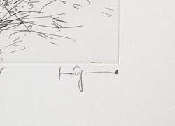 1986. Radierung / Strichätzung, in Schwarz, auf kräftigem hellchamois Hahnemühle. – Originale Künstlergrafik, von Gertrude Degenhardt. – Auflage Exemplar Nr. 62/200. – 27,3 x 17,2 cm (Darstellung / Platte), 40 x 30 cm (Blatt).