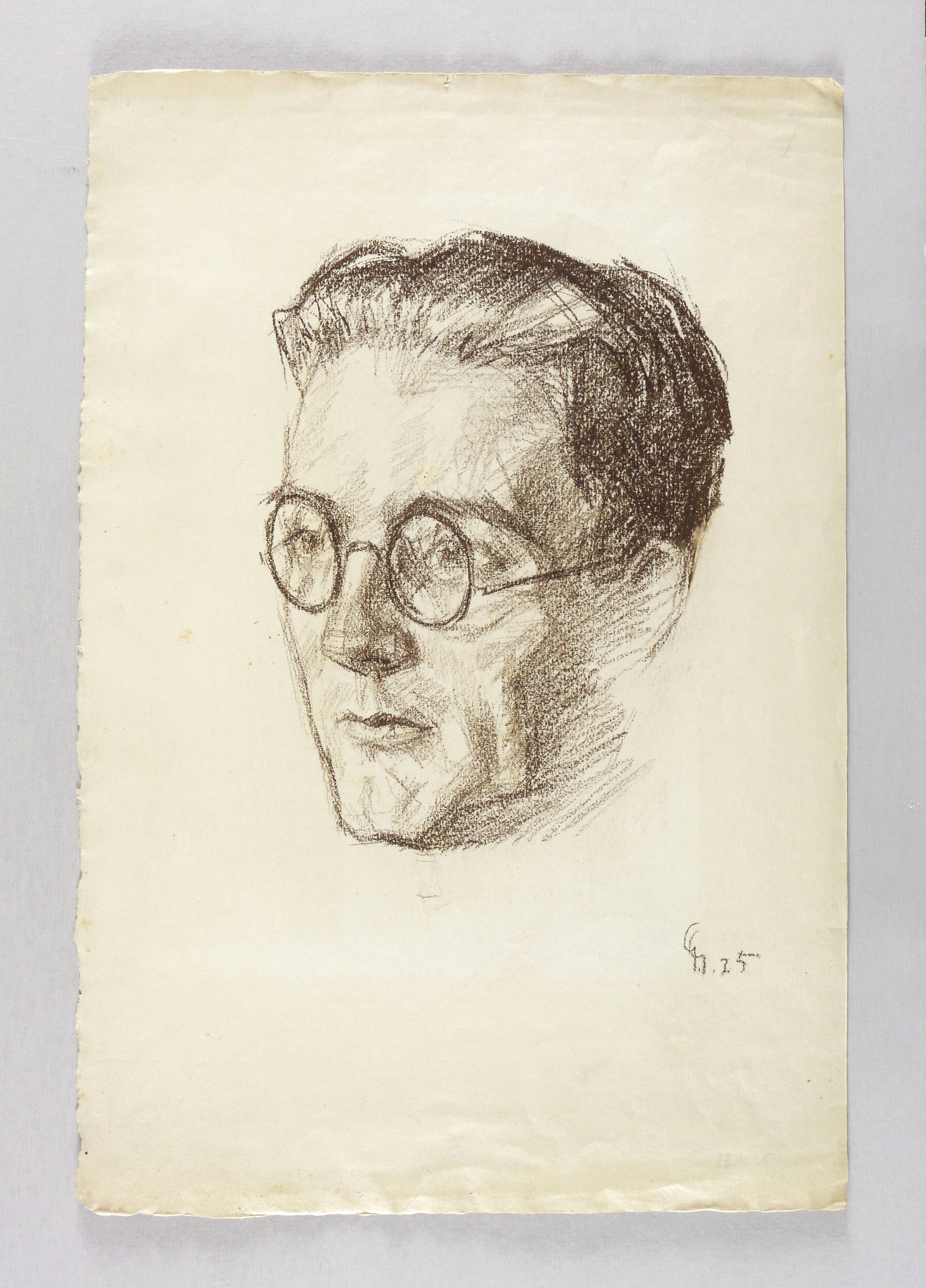 1925. Zeichnung / Kreidezeichnung, in Dunkelbraun, auf festem gelblichem Bütten. – Originale Künstlergrafik, von Georg Gelbke. – Unikat. – 46,0 x 31,0 cm (Darstellung / Blatt).