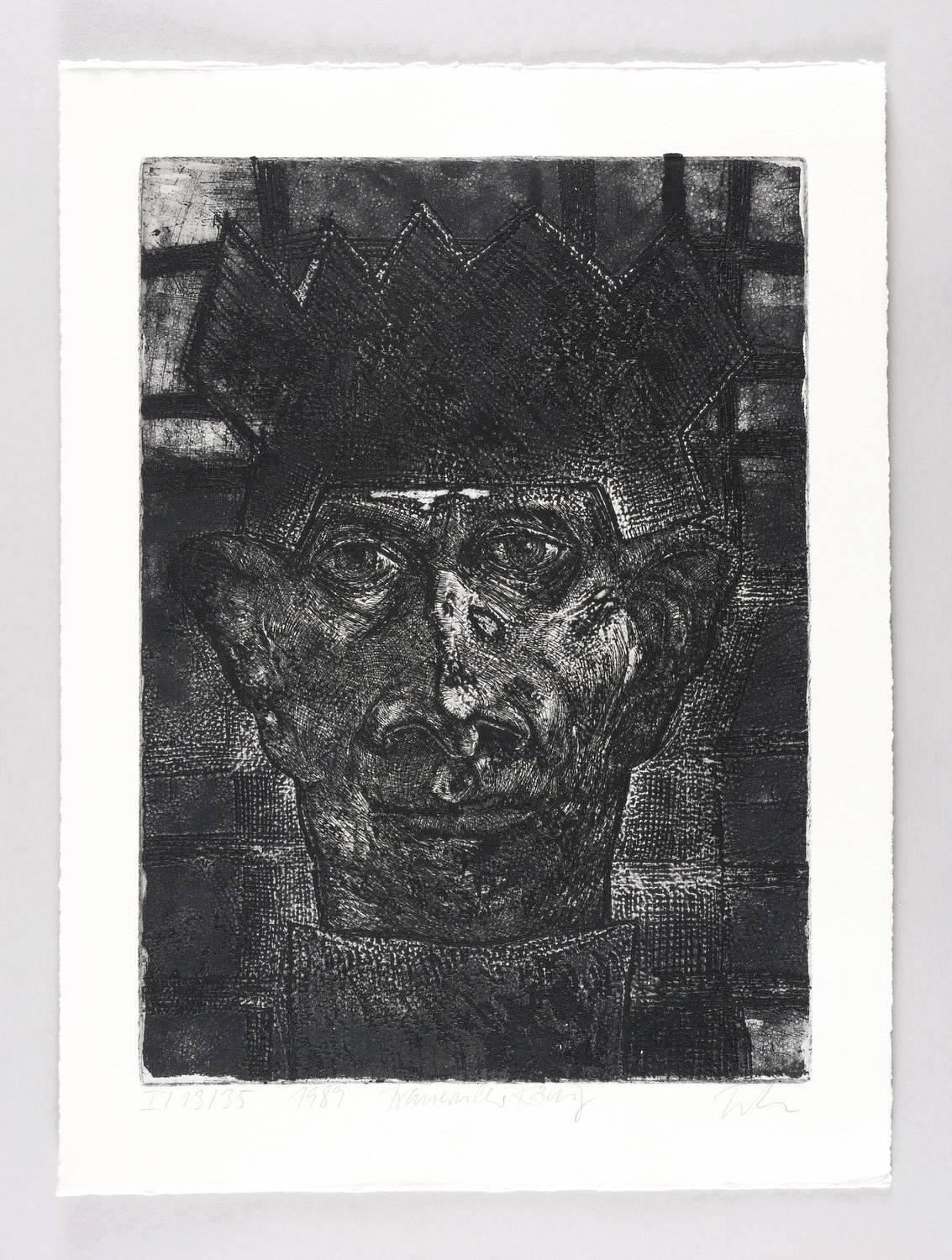 1989. Radierung / Reservage & Strichätzung, in Schwarz, auf schwerem hellchamois Hahnemühle. – Originale Künstlergrafik, von Hans Joachim Triebsch. – Auflage Exemplar Nr. 13/35. – 44,3 x 32,0 cm (Darstellung / Platte), 54 x 40 cm (Blatt).