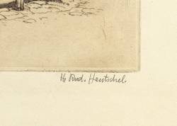 1910-1920. Radierung / Strichätzung & Kaltnadel, in Schwarzbraun, auf gelbem Kupferdruckkarton. – Originale Künstlergrafik, von Hans Rudolph Hentschel. – 25,2 x 23,7 cm (Darstellung / Druckbild), 39 x 37 cm (Blatt).