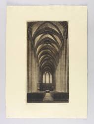 Um 1910. Radierung / Strichätzung & Kaltnadel, in Schwarzbraun, auf gelbem Kupferdruckkarton. – Originale Künstlergrafik, von Hans Rudolph Hentschel. – 40,5 x 21,0 cm (Darstellung / Druckbild), 55 x 40 cm (Blatt).