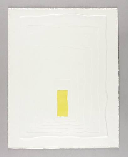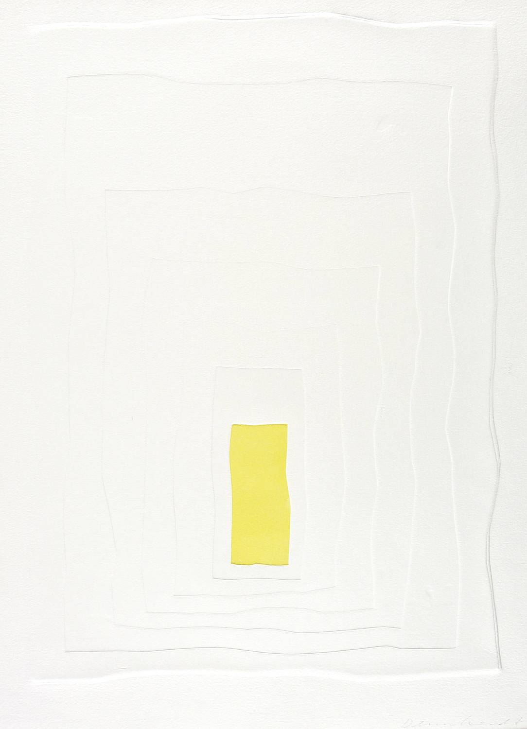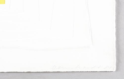 1981. Siebdruck / Serigrafie & Prägedruck, in Gelb, auf weichem weißem Bütten. – Originale Künstlergrafik, von Klaus Dennhardt. – 44,0 x 31,5 cm (Darstellung / Druckbild), 50 x 40 cm (Blatt).