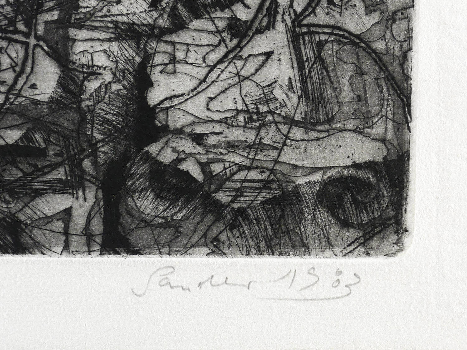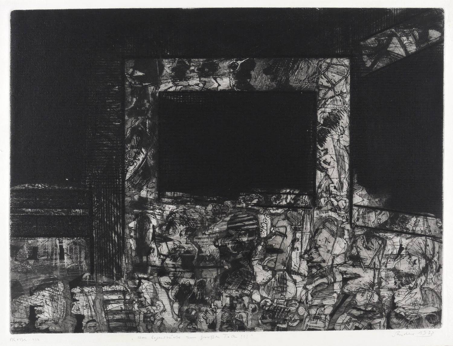 Rechts unten in Bleistift signiert und datiert: ″Sander 1983″. Links Auflagenbezeichnung: ″PROBE 2/2″. Mittig Titel: ″Das Gegenstück zum großen TOR!!!″ – Sehr guter Zustand.