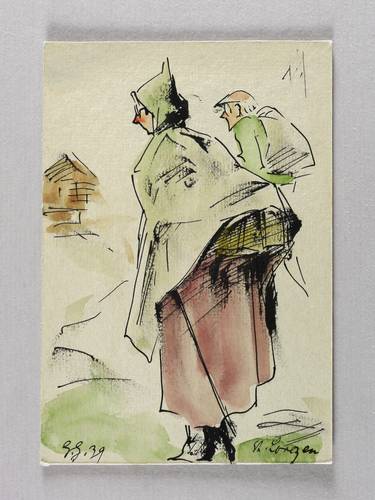 1939. Zeichnung / Federzeichnung, aquarelliert, auf rauem hellgrauem Aquarellkarton. – Originale Künstlergrafik, von Georg Gelbke. – Unikat. – 15,1 x 10,3 cm (Darstellung / Blatt).