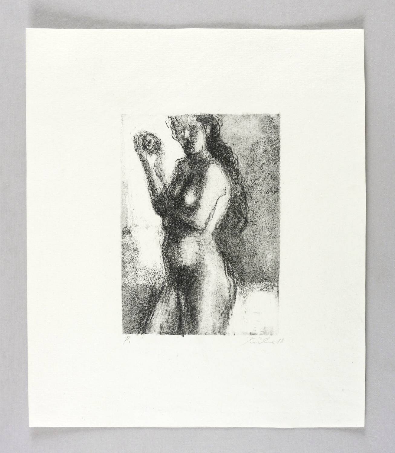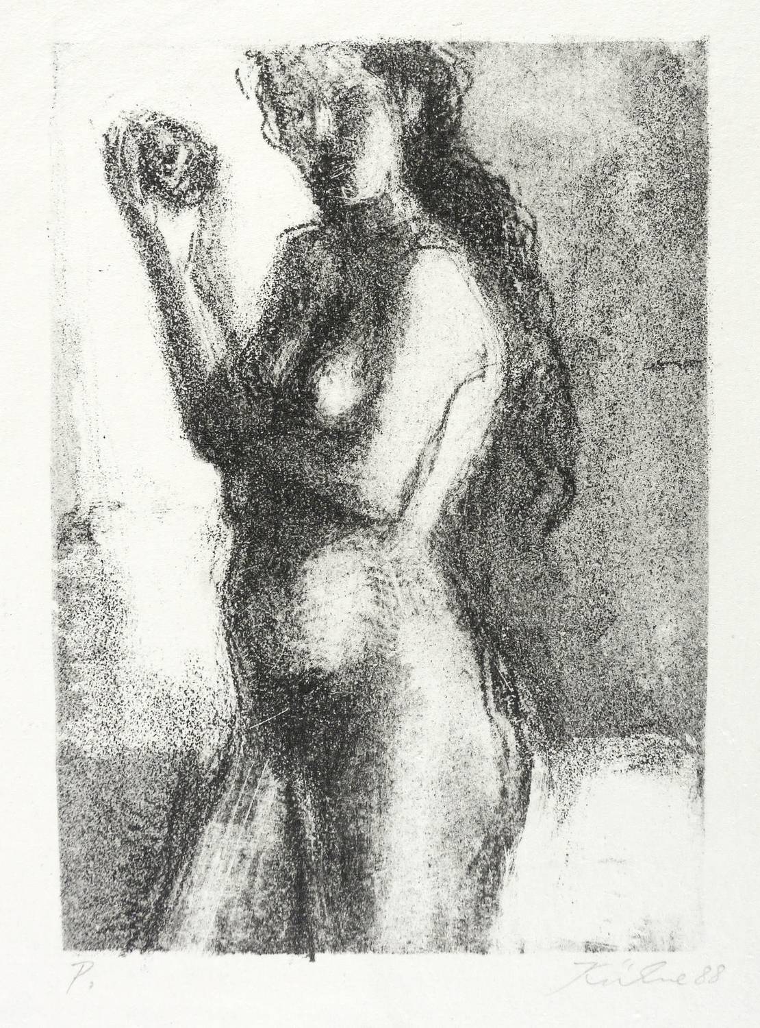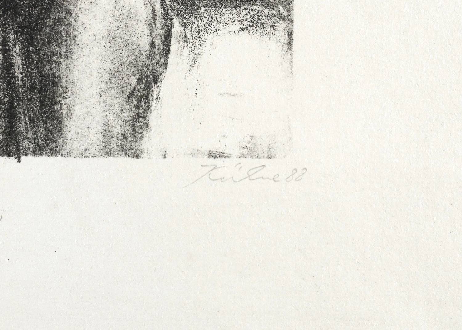 1988. Lithografie / Kreidelithografie, in Schwarz, auf hellchamois Velin. – Originale Künstlergrafik, von Wolfgang Kühne. – Probedruck. – 14,8 x 10,6 cm (Darstellung / Druckbild), 27 x 23 cm (Blatt).