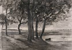 1903. Zeichnung / Graphit & Kohle, auf feinem rötlichem PL-BAS-Bütten. – Originale Künstlergrafik, von Deutsch (20. Jh.). – Unikat. – 29 x 38 cm (Blatt), 23,5 x 33,0 cm (Darstellung).