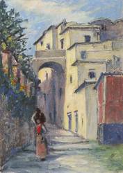 Rechts unten in Bleistift bezeichnet und datiert: ″Ravello 16/V.03″. Wasserzeichen PL BAS. – Aus einem qualitätsvollen anonymen Skizzenbuch mit Zeichnungen aus Süditalien bei Capri und Nordholland aus dem Jahr 1903. – Etwas fingerfleckig im Rand außerhalb der Darstellung. Guter Zustand.
