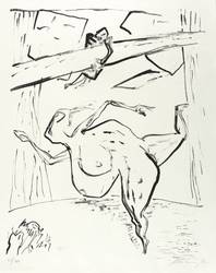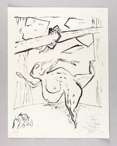 1982. Algrafie / Kreidealgrafie, in Schwarz, auf hellgelbem Maschinenbütten. – Originale Künstlergrafik, von Deutsch (20. Jh.). – Auflage Exemplar Nr. 58/100. – 39,0 x 31,7 cm (Darstellung / Druckbild), 46 x 35 cm (Blatt).