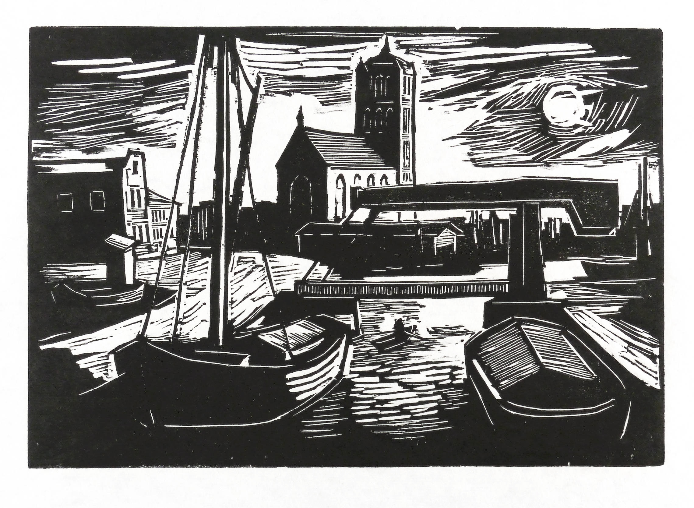 Karnahl 105. – Nicht handsigniert. Verso in Bleistift bezeichnet: ″Herbert Tucholski / Im Stralsunder Hafen″. – Nachlassdruck von dem originalen Druckstock. – Tadelloser Zustand. Sehr gut erhalten.
