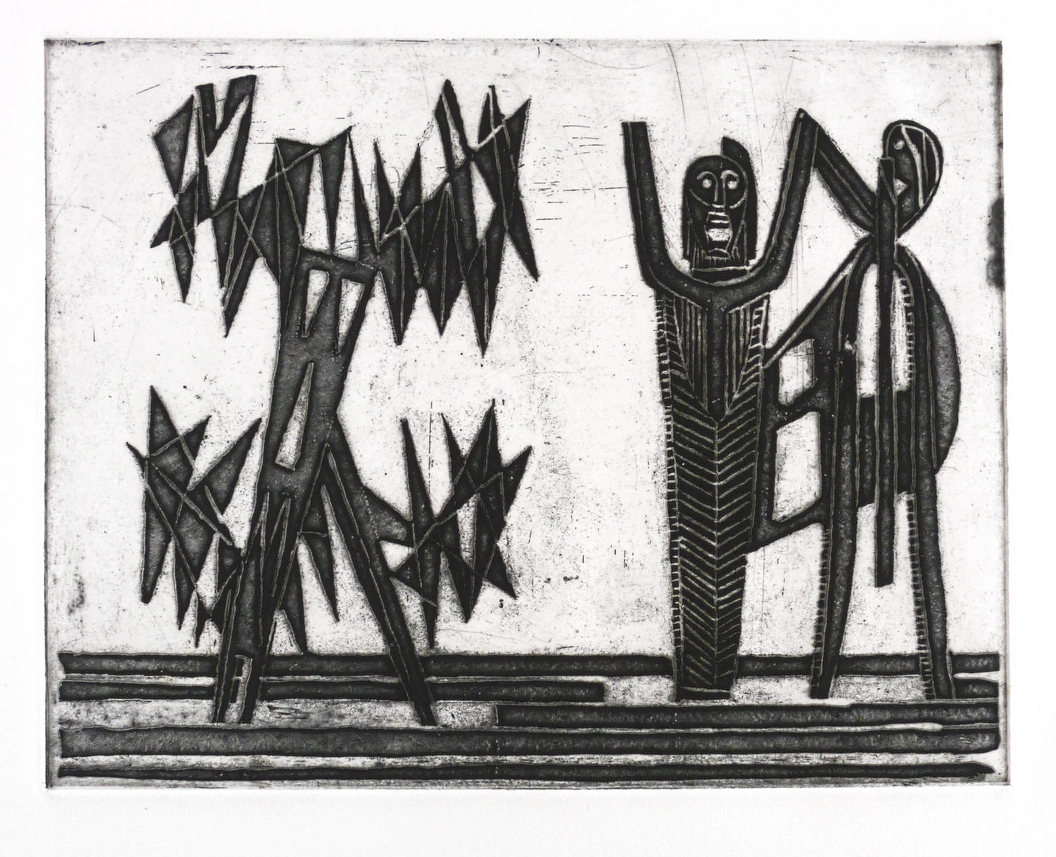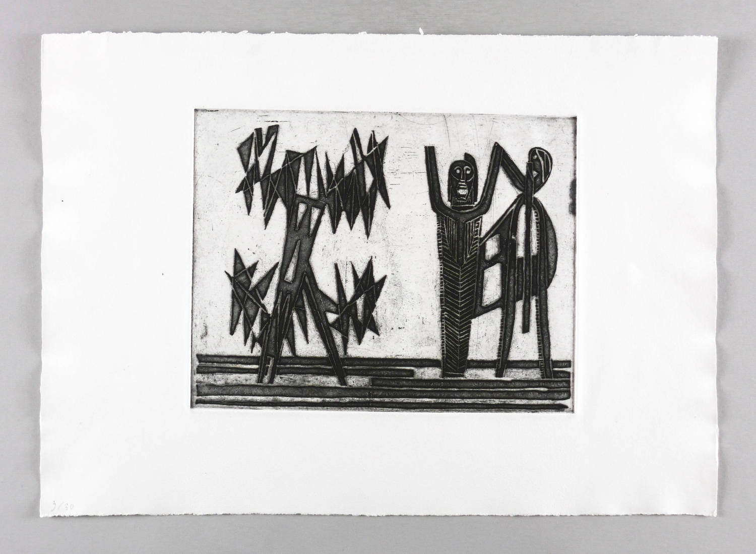 Um 1950. Radierung / Strichätzung & Aquatinta, in Schwarz, auf schwerem hellchamois Bütten. – Originale Künstlergrafik, von Max Lachnit. – Auflage Exemplar Nr. 3/30. – 25,0 x 31,8 cm (Darstellung / Platte), 40 x 56 cm (Blatt).