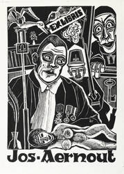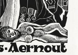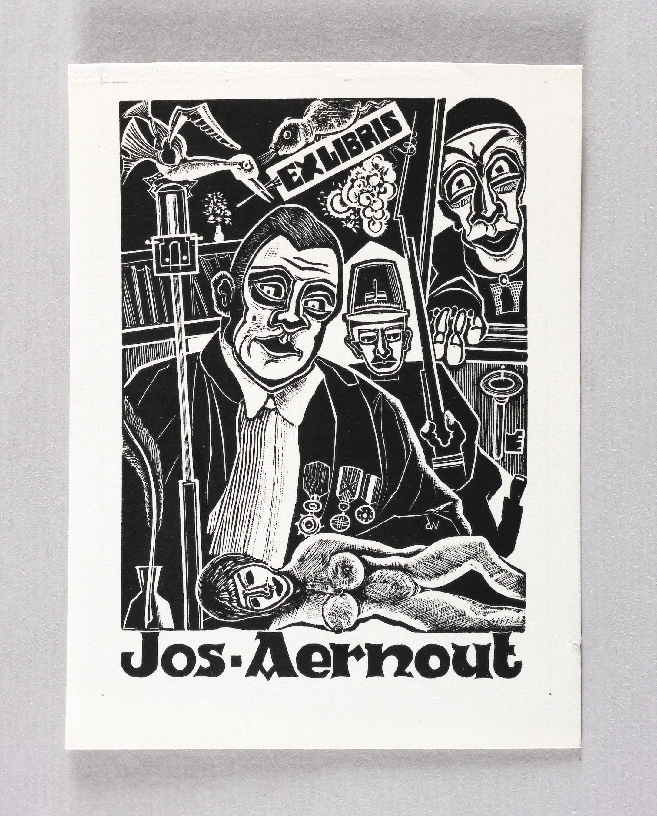 Im Druckstock ligiertes Monogramm: ″dW″. Inschrift: ″EX LIBRIS // Jos Aernout″. – Oberhalb leichte Montagespur. Guter Zustand.