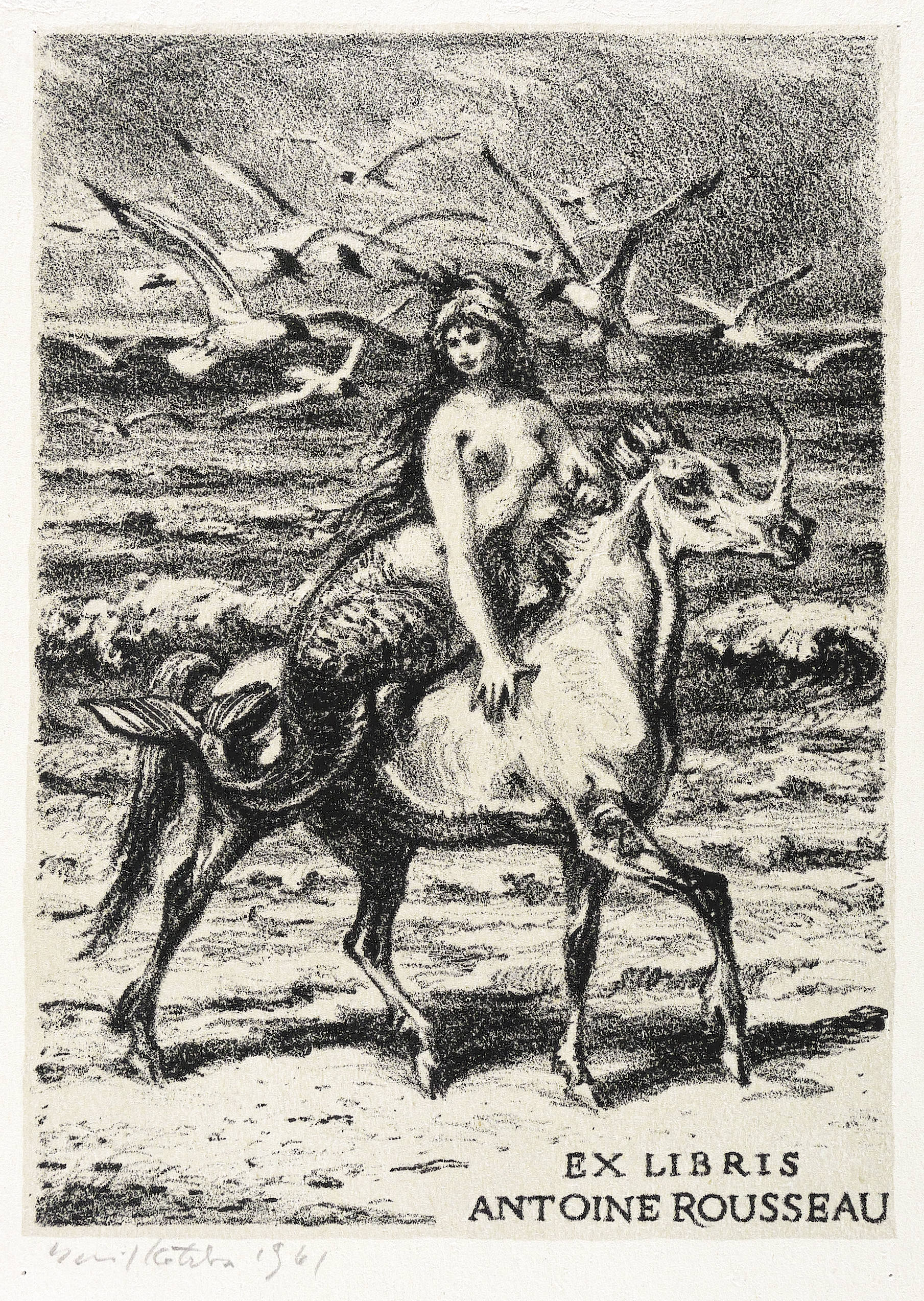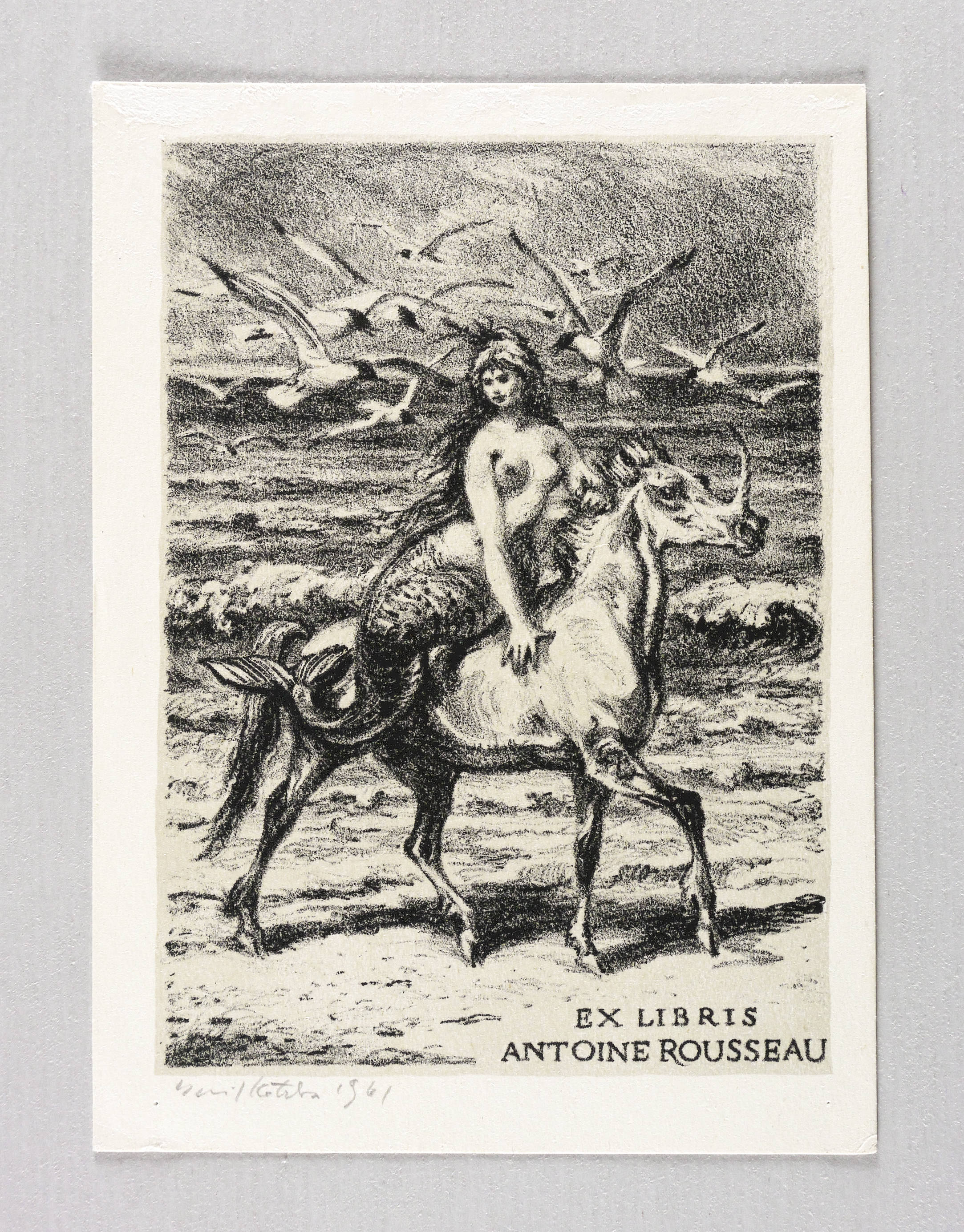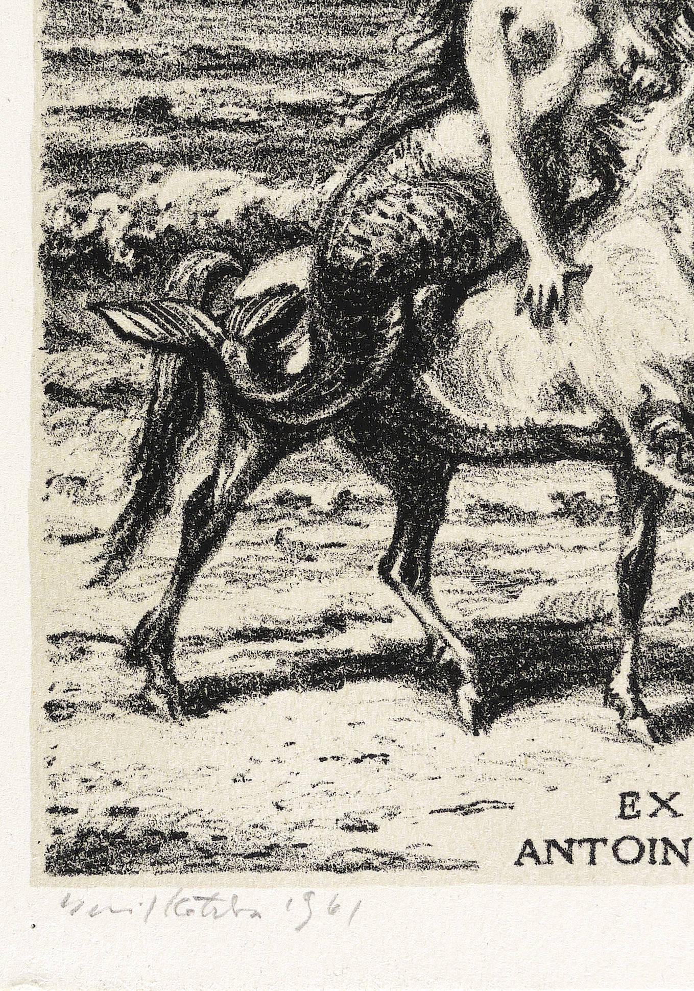Links unten in Bleistift signiert und datiert: ″Emil Kotrba 1961″. Inschrift: ″EX LIBRIS ANTOINE ROUSSEAU″. Verso Künstler-Stempel. – Sehr guter Zustand.