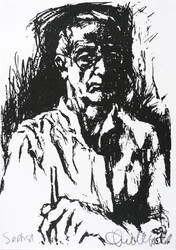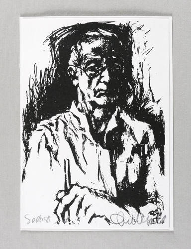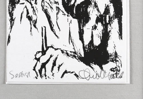 1987. Algrafie / Federalgrafie, in Schwarz, auf weißem Karton. – Originale Künstlergrafik, von Gerhard Stengel. – 16,2 x 11,5 cm (Darstellung / Blatt), 16,6 x 11,9 cm (Trägerblatt).