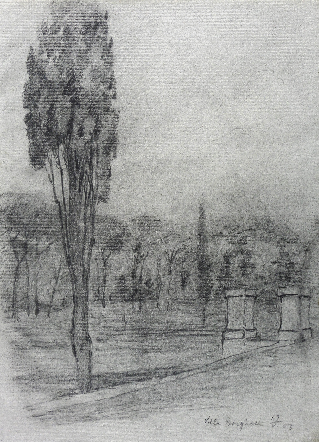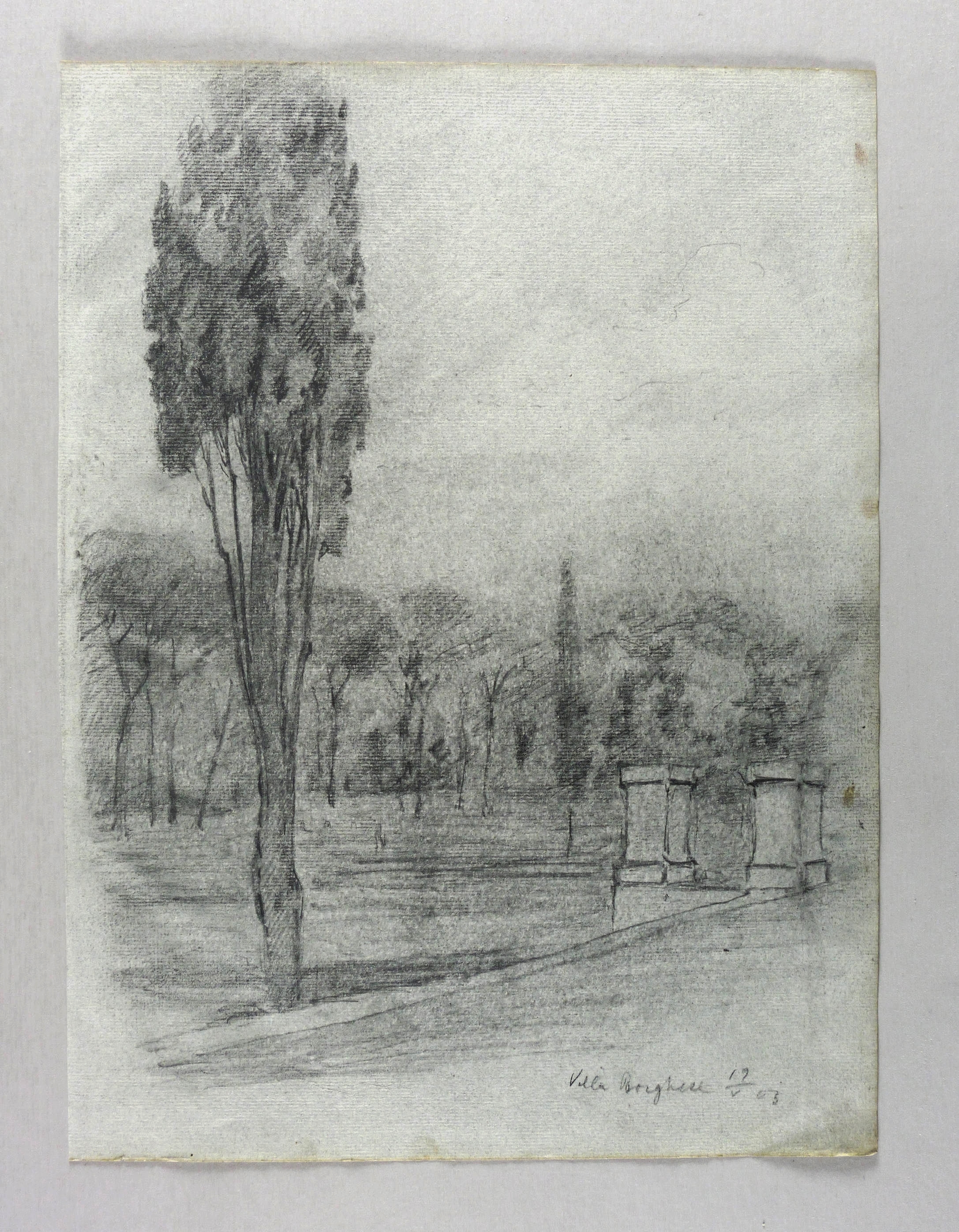 Rechts unten in Bleistift eigenhändig bezeichnet: ″Villa Borghese 19/V 03″. Wasserzeichen PL BAS. – Aus einem qualitätsvollen anonymen Skizzenbuch mit Zeichnungen aus Süditalien bei Capri und Nordholland aus dem Jahr 1903. – Guter Zustand.