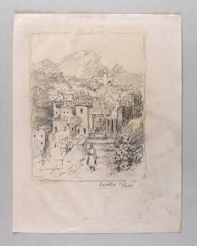 Rechts unten in Bleistift eigenhändig bezeichnet: ″Ravello 12/V. 03″. Wasserzeichen: ″V D & T″. – Aus einem qualitätsvollen anonymen Skizzenbuch mit Zeichnungen aus Süditalien bei Capri und Nordholland aus dem Jahr 1903. – Im Rand etwas fleckig. Guter Zustand.