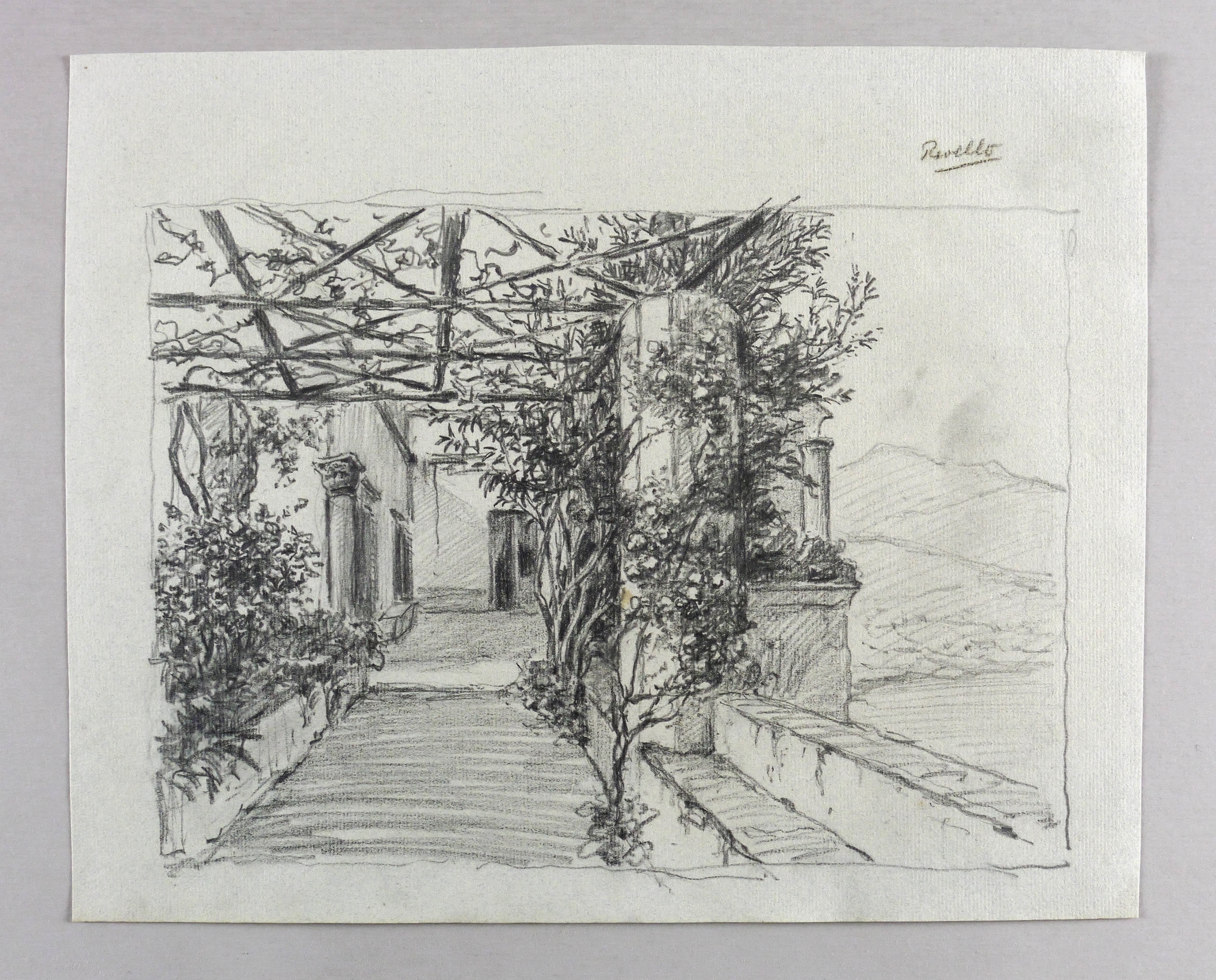 Rechts oben in Bleistift eigenhändig bezeichnet: ″Ravello″. Wasserzeichen PL BAS. – Aus einem qualitätsvollen anonymen Skizzenbuch mit Zeichnungen aus Süditalien bei Capri und Nordholland aus dem Jahr 1903. – Minimal fleckig. Guter Zustand.