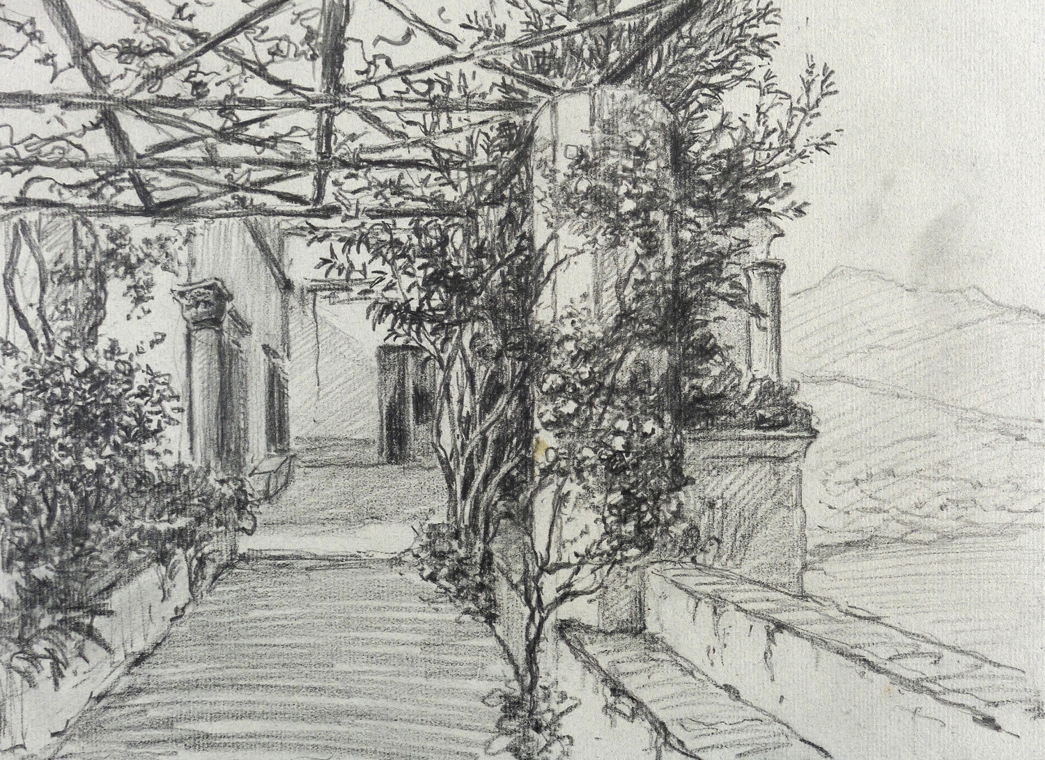 Deutscher Zeichner. – „Terrasse in Ravello (Amalfiküste)”.