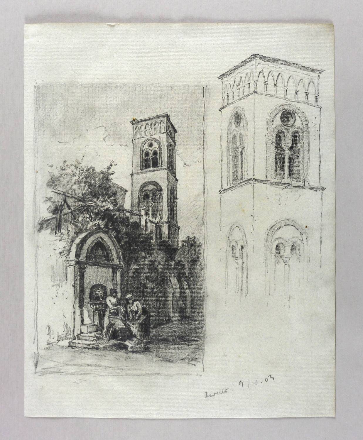Rechts unten in Bleistift eigenhändig bezeichnet: ″Ravello 9/V. 03″. Wasserzeichen ET. – Aus einem qualitätsvollen anonymen Skizzenbuch mit Zeichnungen aus Süditalien bei Capri und Nordholland aus dem Jahr 1903. – Sehr guter Zustand.