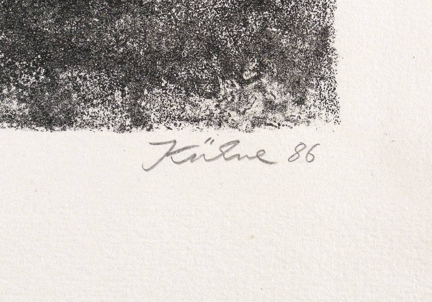 Rechts unten in Bleistift signiert und datiert: ″Kühne 86″. Links Auflagen- und Technikbezeichnung. Mittig Titel. – Im linken Blattrand zwei kleine Fleckchen, weit außerhalb der Darstellung. Guter Zustand.