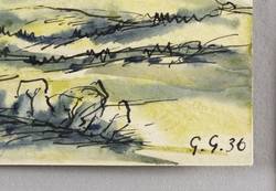 1936. Aquarell, über Feder & schwarzer Tusche, auf Karton. – Originale Künstlergrafik, von Georg Gelbke. – Unikat. – 11,1 x 13,7 cm (Darstellung / Blatt).