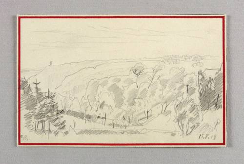 1918. Zeichnung / Bleistiftzeichnung, auf glattem hellgelbem Postkarten-Karton. – Originale Künstlergrafik, von Georg Gelbke. – Unikat. – 8,3 x 13,2 cm (Darstellung), 8,7 x 13,7 cm (Blatt).