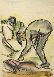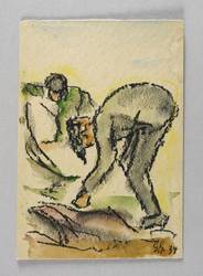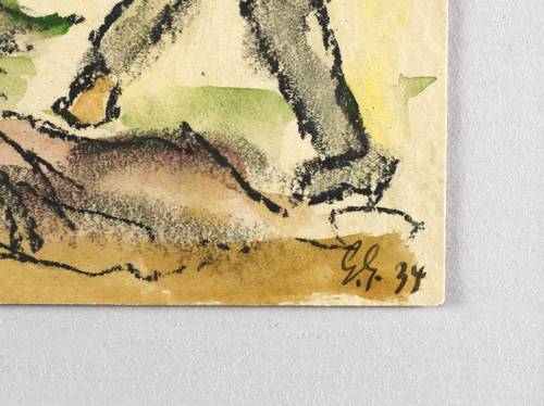 1934. Mischtechnik / Kreide & Aquarell, auf gelblichem Aquarellkarton. – Originale Künstlergrafik, von Georg Gelbke. – Unikat. – 14,8 x 10,3 cm (Darstellung / Blatt).