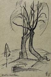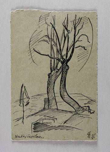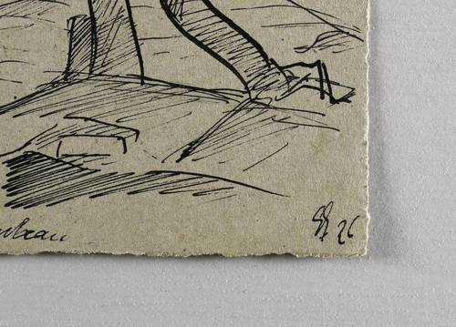 1926. Zeichnung / Federzeichnung, in schwarzer Tusche, auf grauem Postkarten-Karton. – Originale Künstlergrafik, von Georg Gelbke. – Unikat. – 15,8 x 10,4 cm (Darstellung / Blatt).