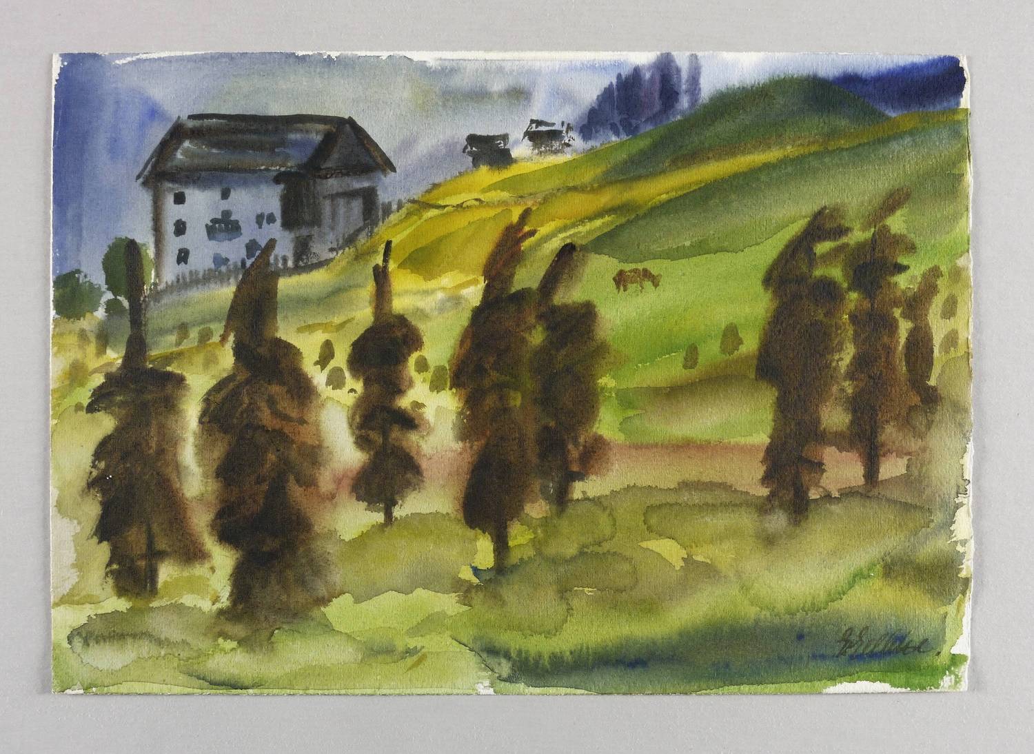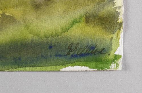 Rechts unten in brauner Feder signiert: ″G. Gelbke″. Verso in Bleistift datiert und bezeichnet ″Anf. Okt. 39 St. Lorenzen″. – Provenienz: Dresdner Privatbesitz, ehemals Sammlung Dr. Theodor Arndt, Dresden- Blasewitz (Vater der Ehefrau des Künstlers Coelestine). – Verso Reste einer ehemaligen Klebefixierung. Farbfrisch. Sehr guter Zustand.
