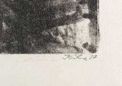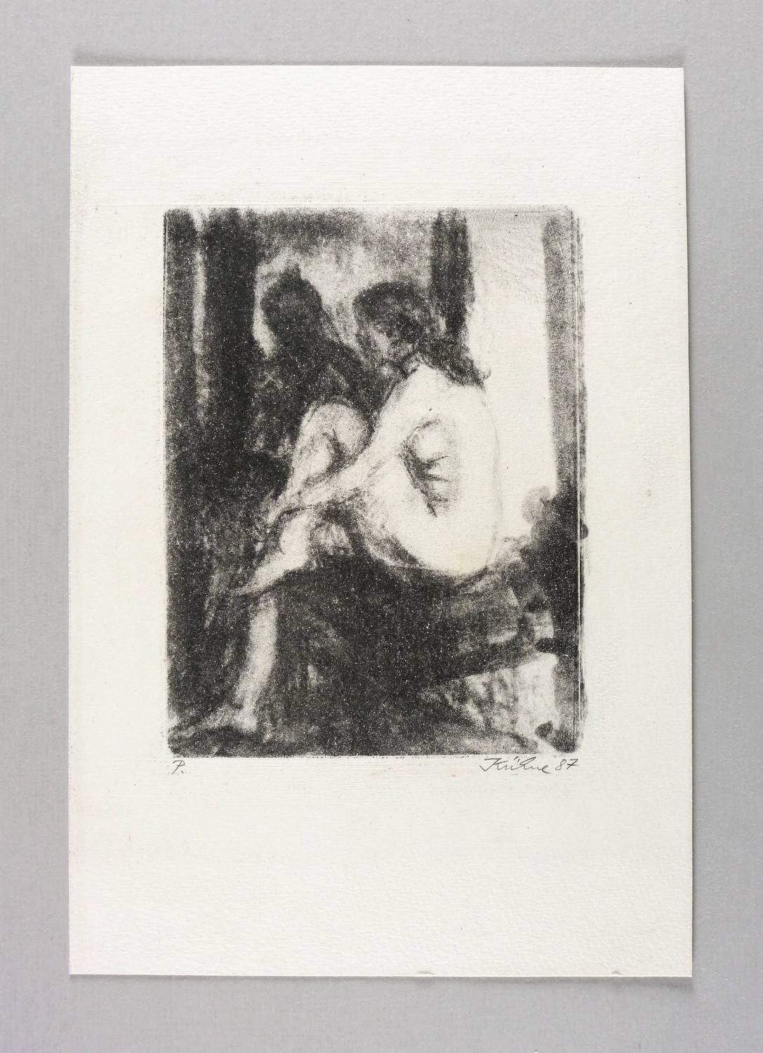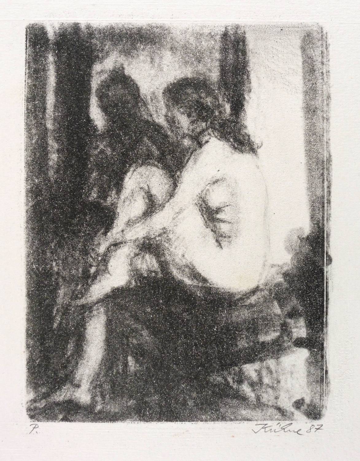 1987. Lithografie / Kreidelithografie, in Schwarz, auf hellchamois Velinkarton. – Originale Künstlergrafik, von Wolfgang Kühne. – Probedruck. – 17,1 x 13,2 cm (Darstellung / Druckbild), 29 x 20 cm (Blatt).