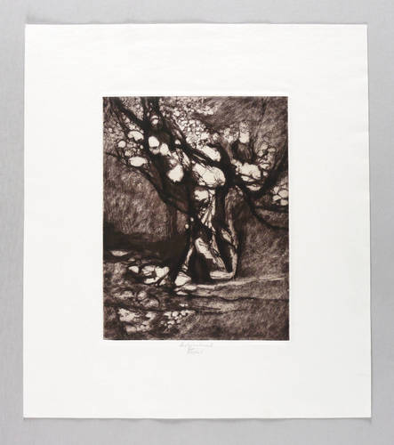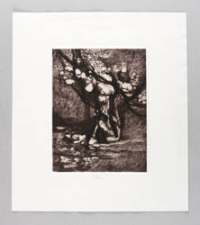 1990-2000. Radierung / Vernis mou, Strichätzung & Roulette, mit Plattenton, in Schwarzviolett, auf hellem Karton. – Originale Künstlergrafik, von Gottfried Körner. – 23,4 x 17,8 cm (Darstellung / Platte), 38 x 33 cm (Blatt).