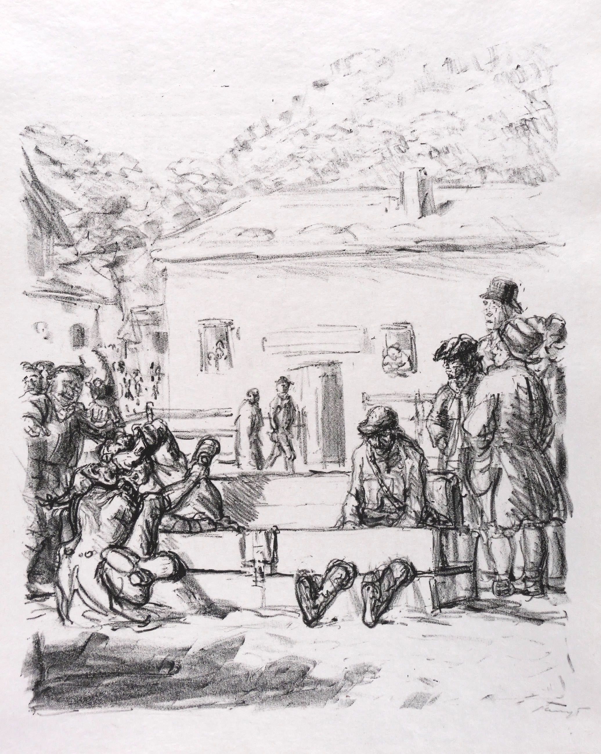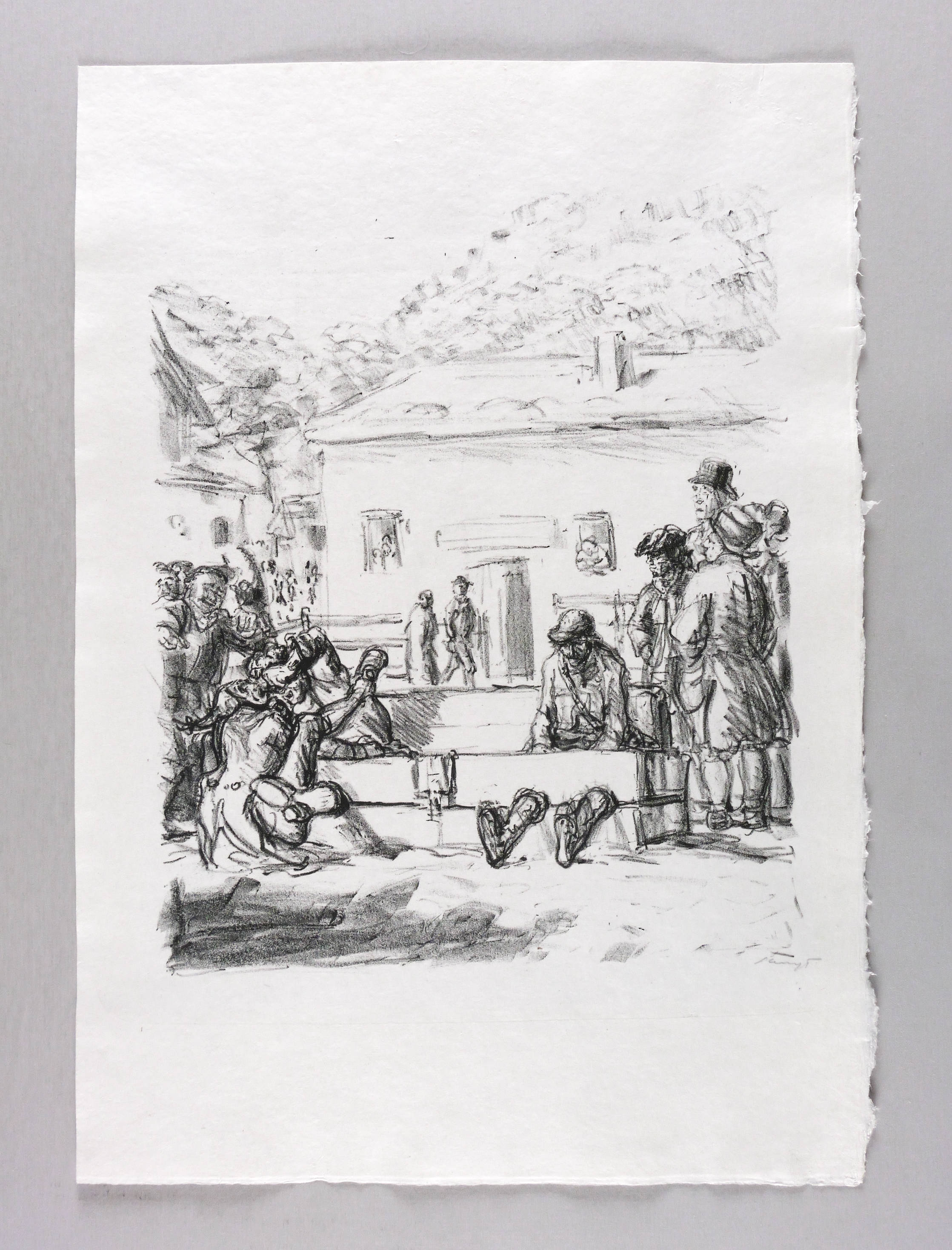 1909. Lithografie / Kreidelithografie, in Schwarz, auf festem hellgelbem Japan. – Originale Künstlergrafik, von Max Slevogt. – 33,4 x 27,5 cm (Darstellung / Druckbild), 48 x 34 cm (Blatt).